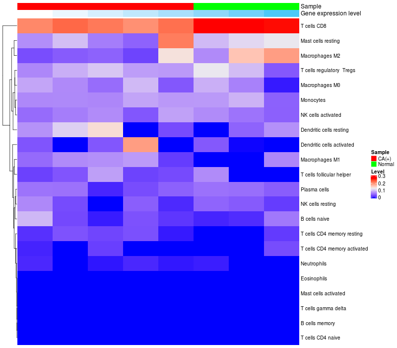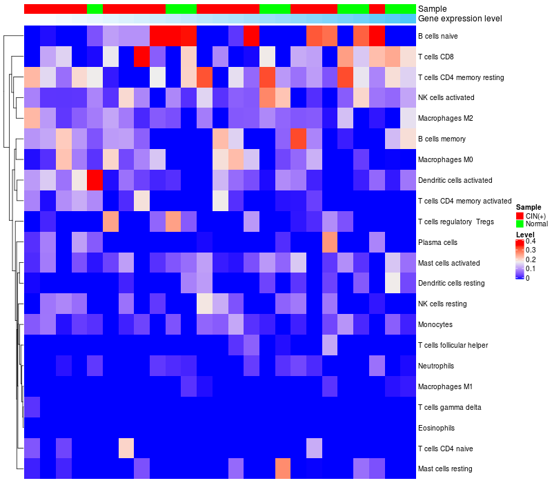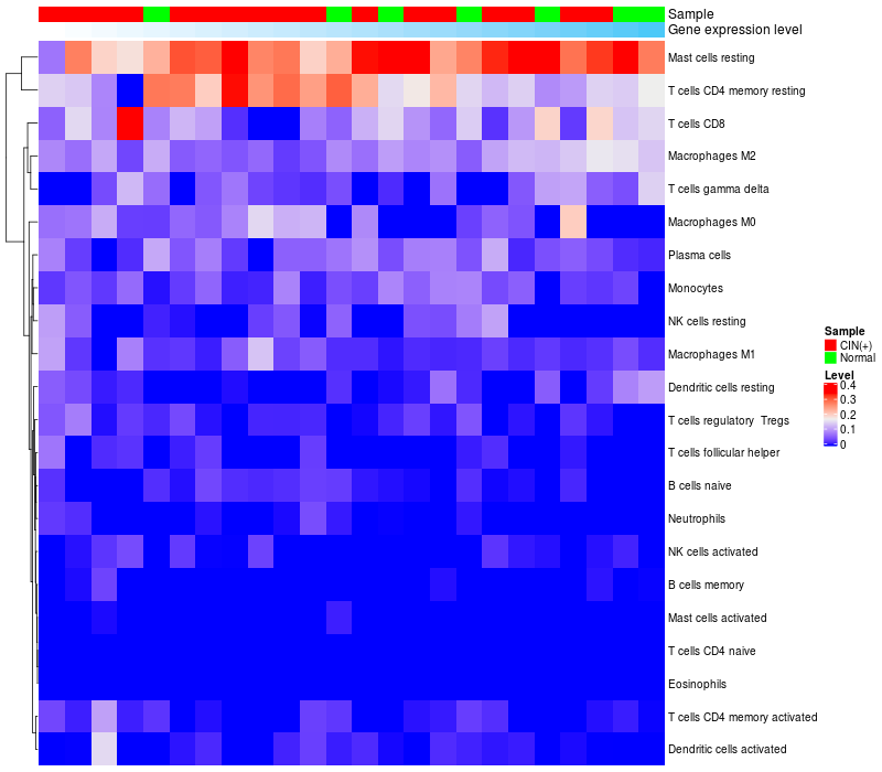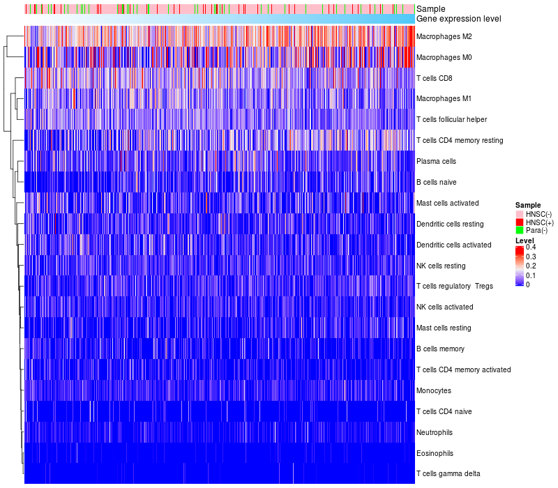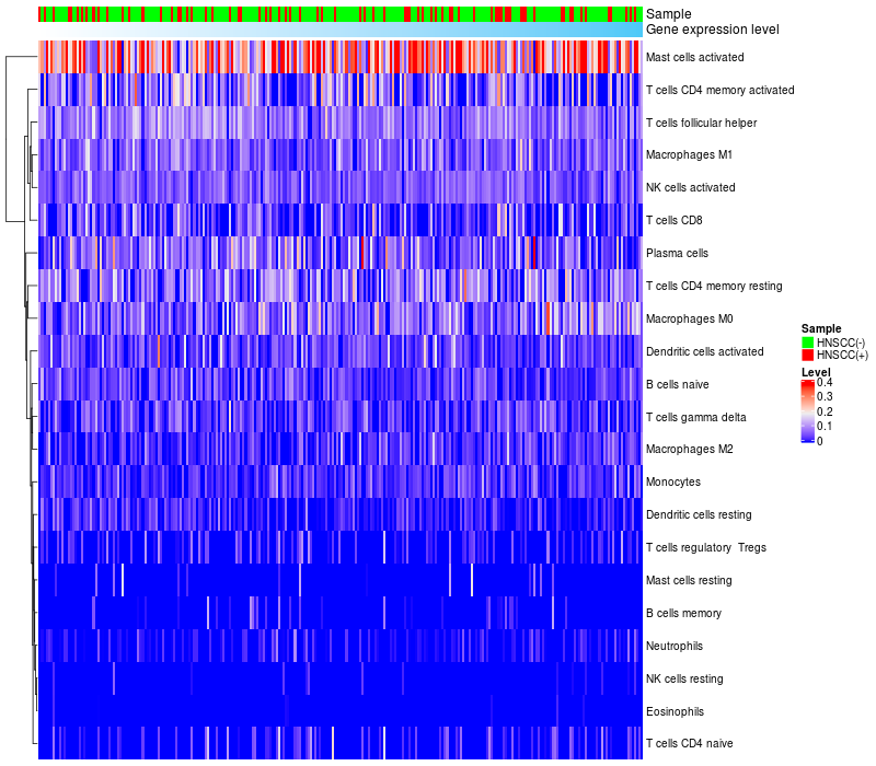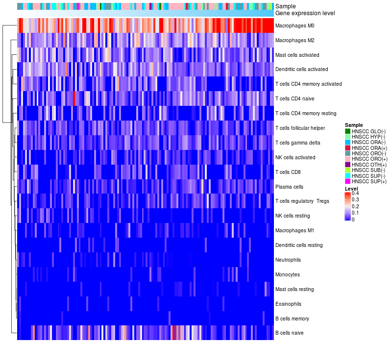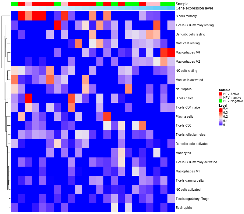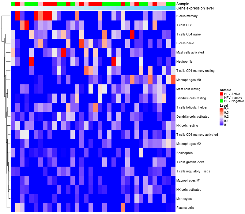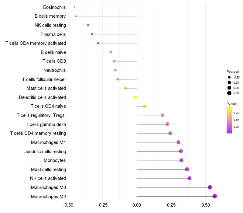 Lollipop of FBLN2 expression and immune infiltrating cell level correlation result in HPV+ samples