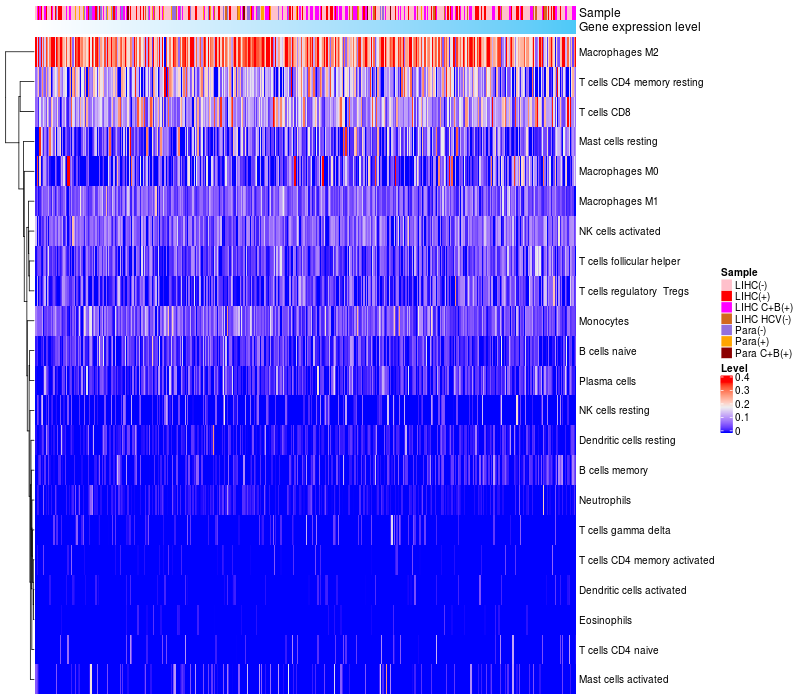 Relationship between gene expression and immune infiltrating cell level