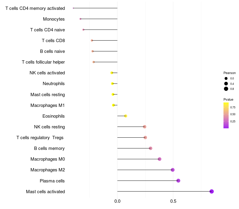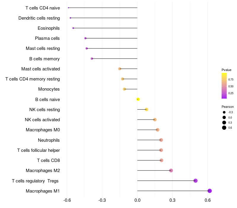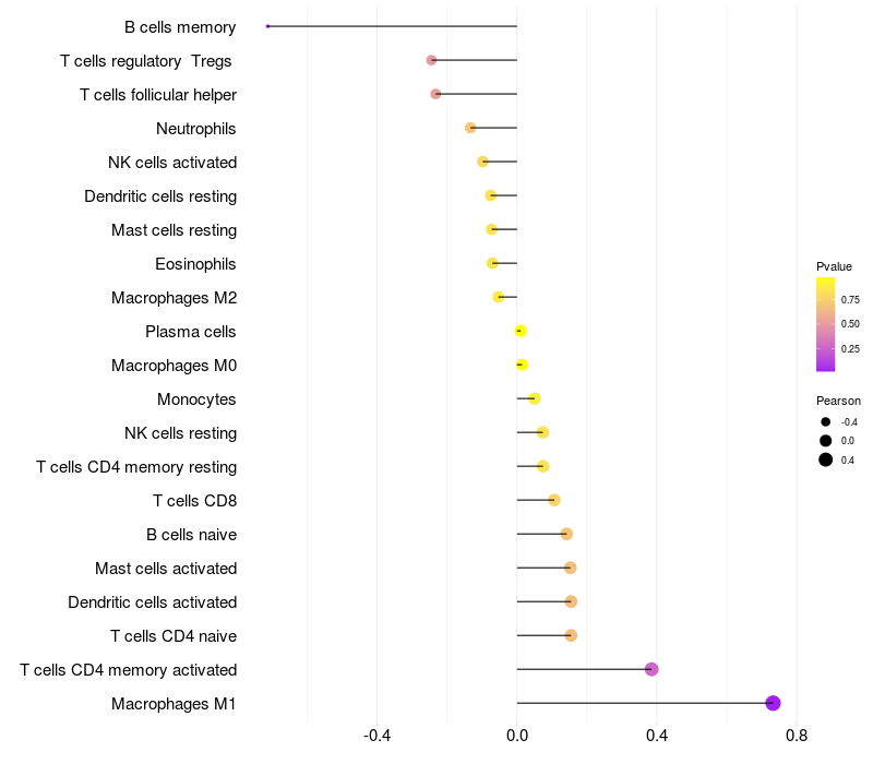 Lollipop of FBXL18 expression and immune infiltrating cell level correlation result in HBV+ Liver cirrhosis samples