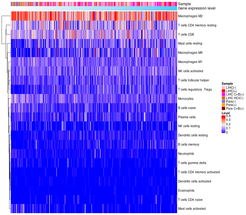 Liver hepatocellular carcinoma HCV (HBV+)(86), Liver hepatocellular carcinoma HCV (HBV-)(19), Liver hepatocellular carcinoma (HBV+)(209), Liver hepatocellular carcinoma (HBV+)(60), Paracancerous HCV (HBV+)(4), Paracancerous (HBV-)(28), Paracancerous (HBV+)(18) |