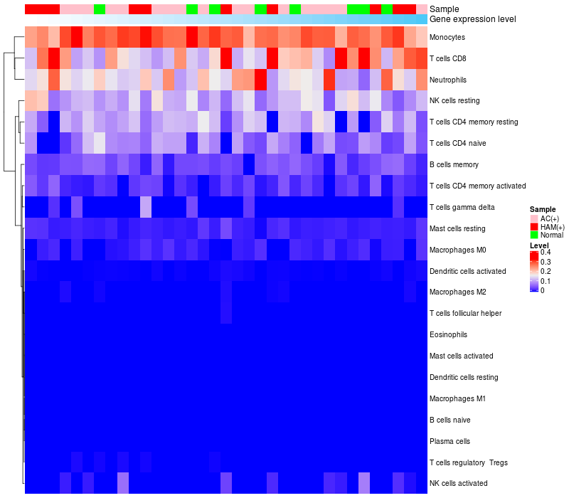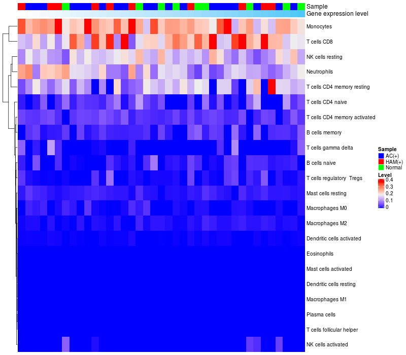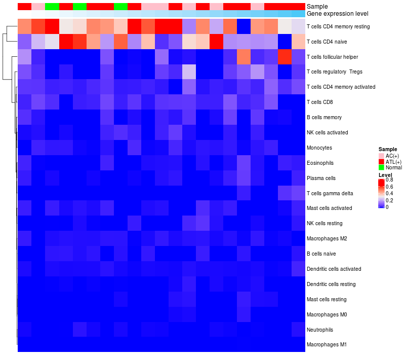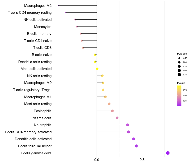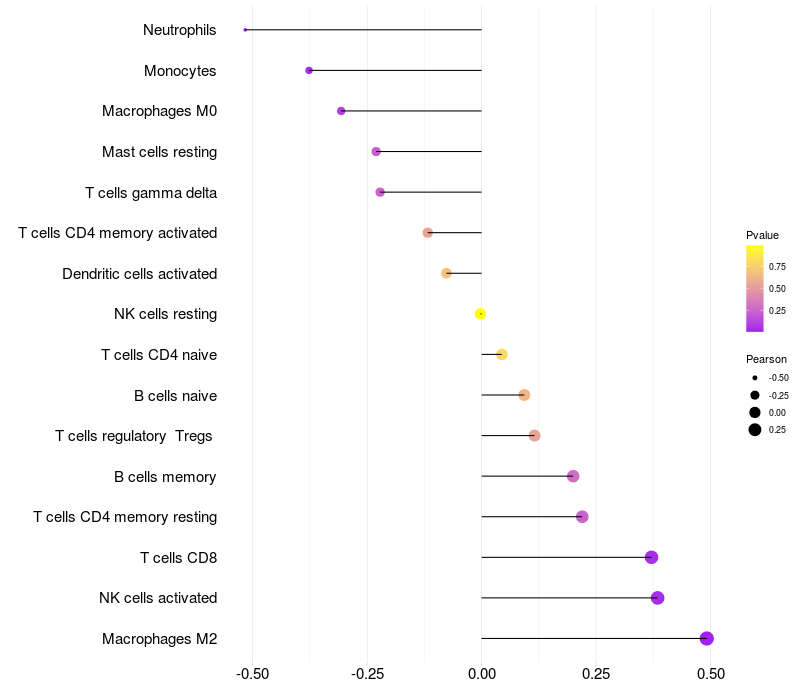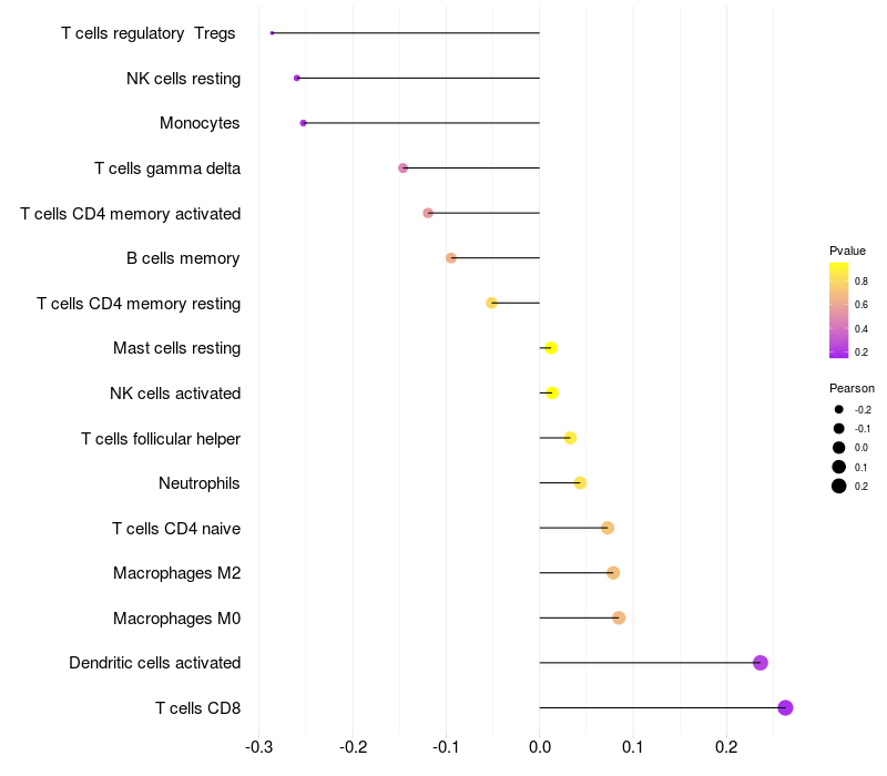 Lollipop of FBXO3 expression and immune infiltrating cell level correlation result in HTLV1+ samples