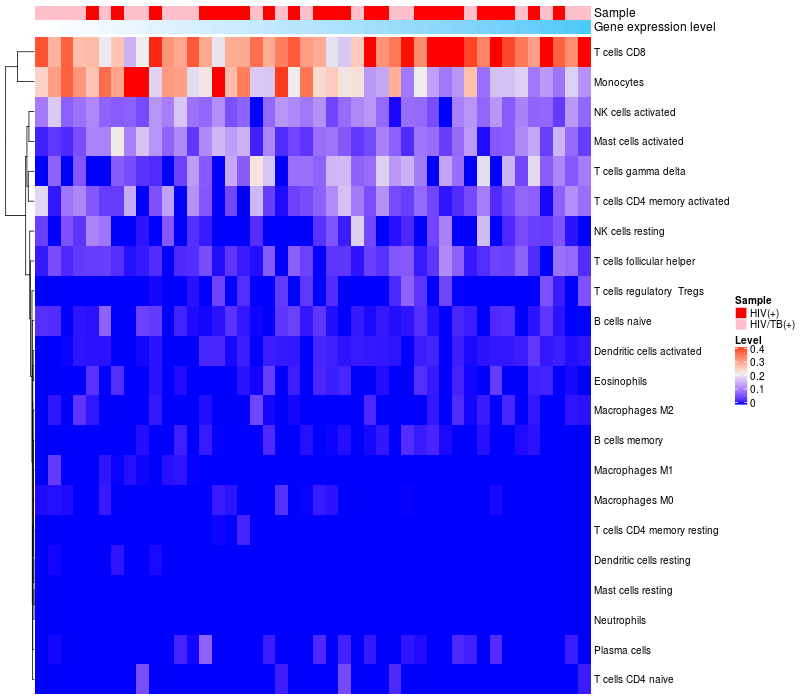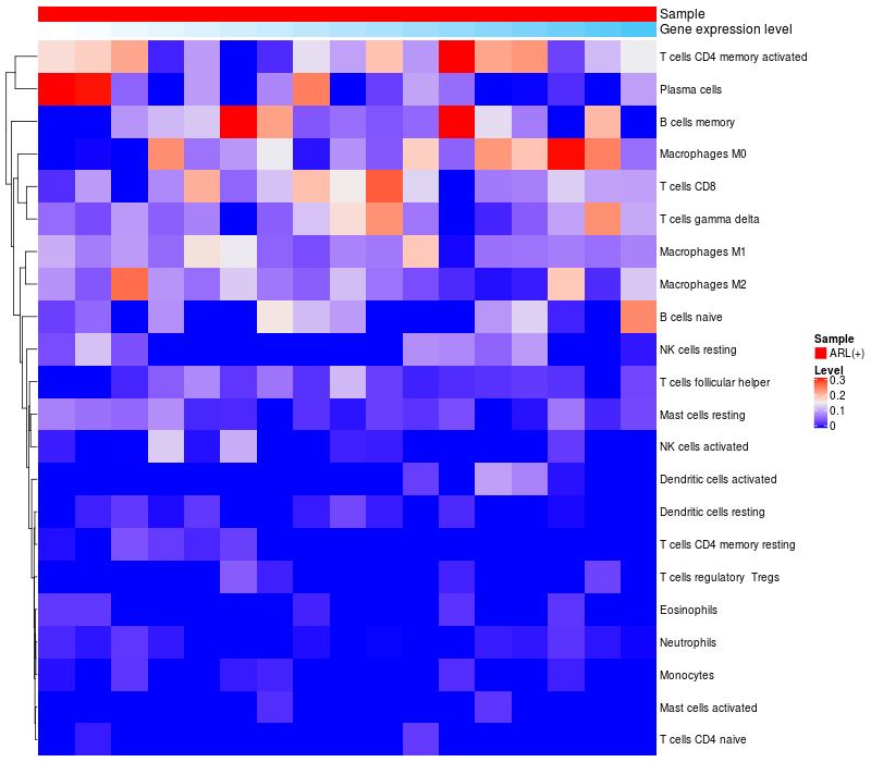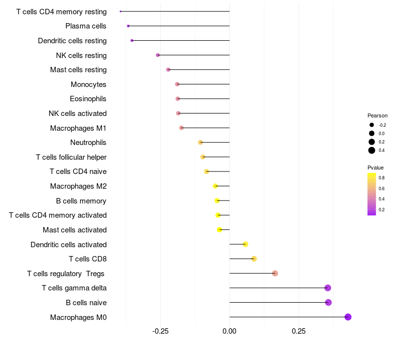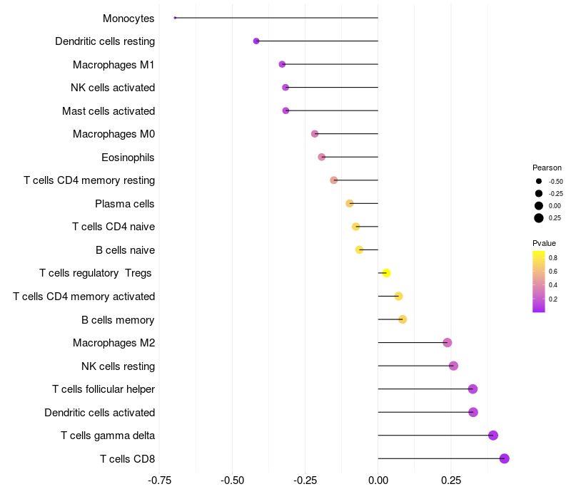 Relationship between gene expression and immune infiltrating cell level
