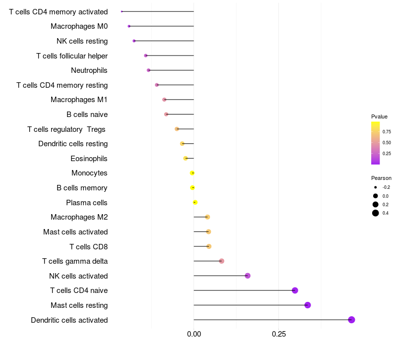 Relationship between gene expression and immune infiltrating cell level