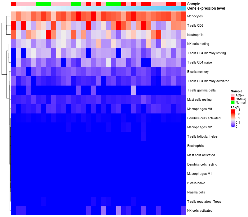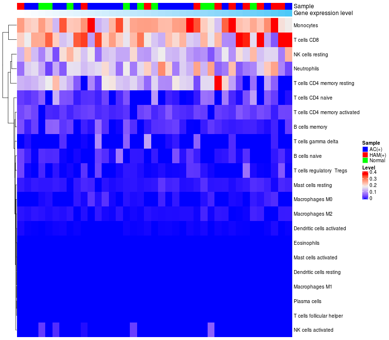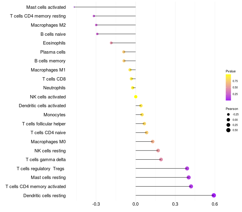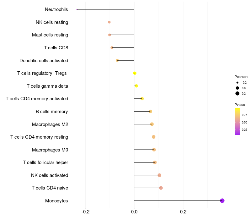 Lollipop of FBXO39 expression and immune infiltrating cell level correlation result in HTLV1+ samples