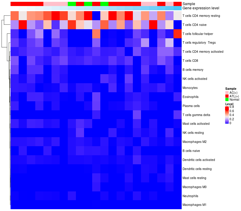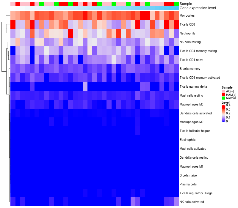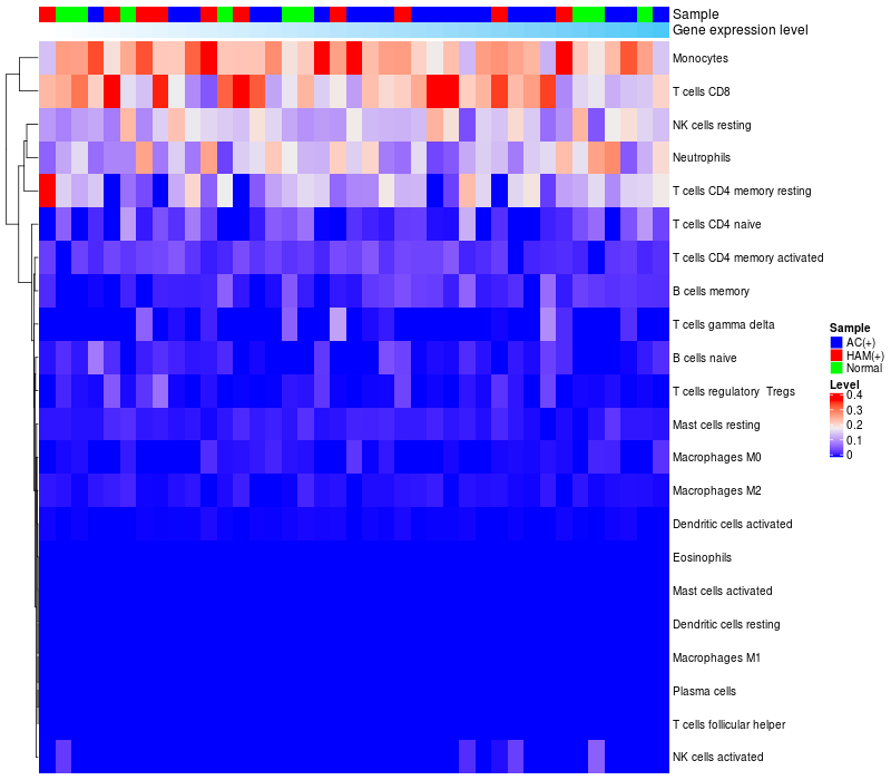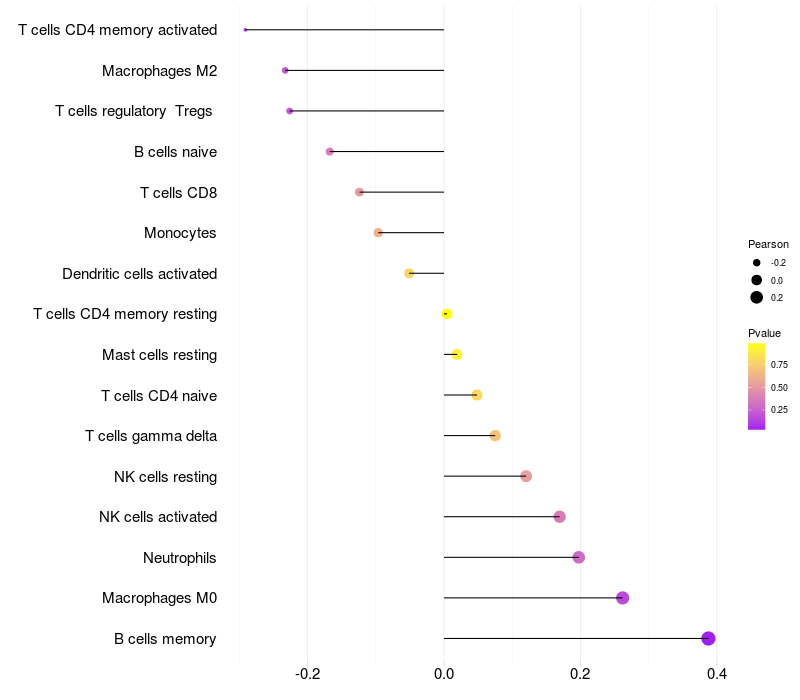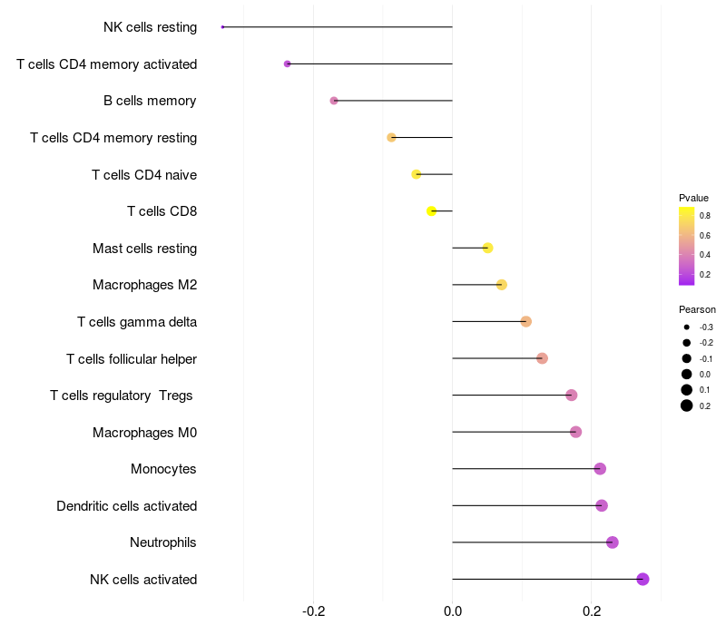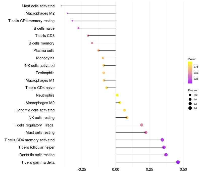 Lollipop of FBXO40 expression and immune infiltrating cell level correlation result in HTLV1+ samples