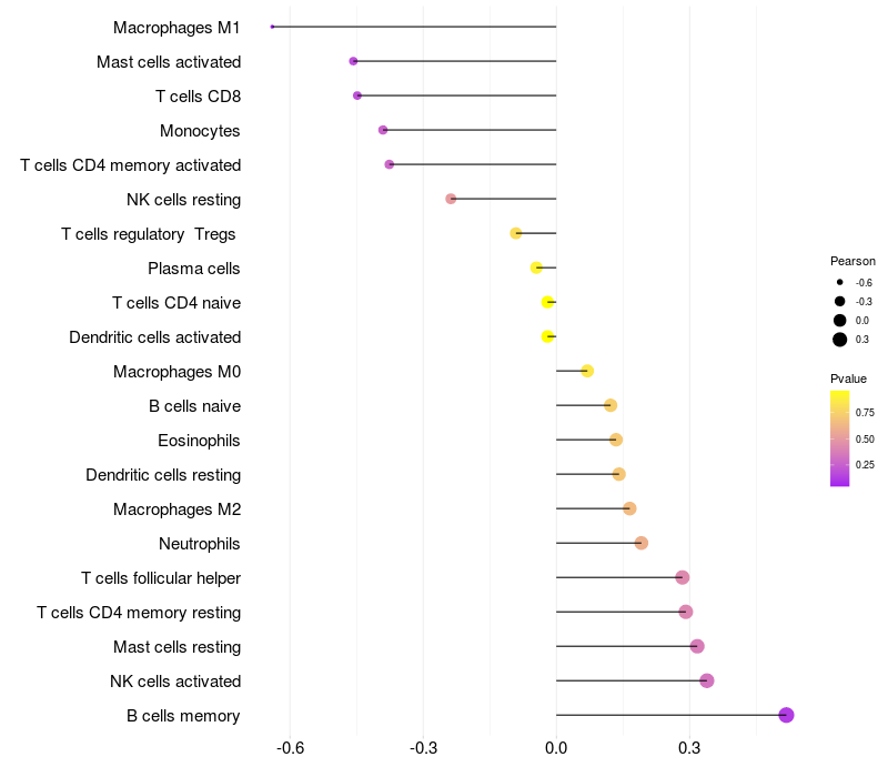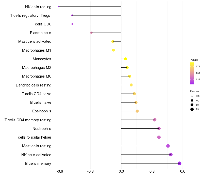 Lollipop of FBXO42 expression and immune infiltrating cell level correlation result in HBV+ Liver cirrhosis samples