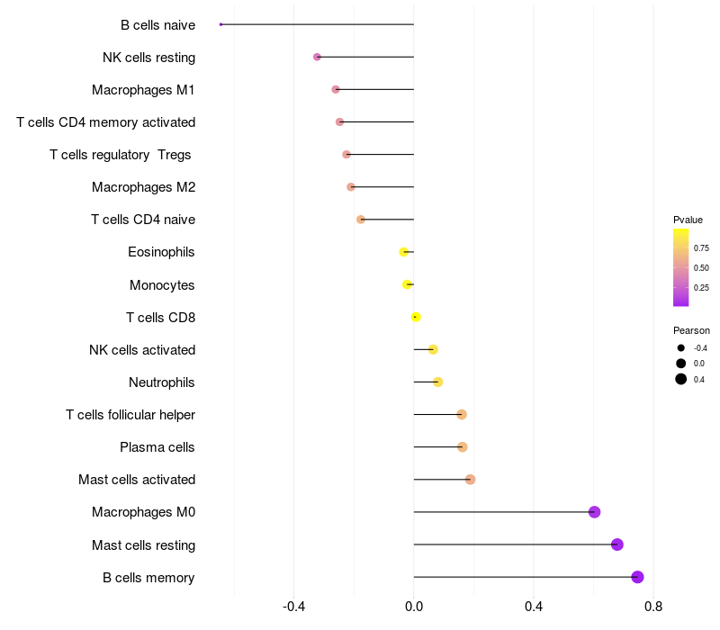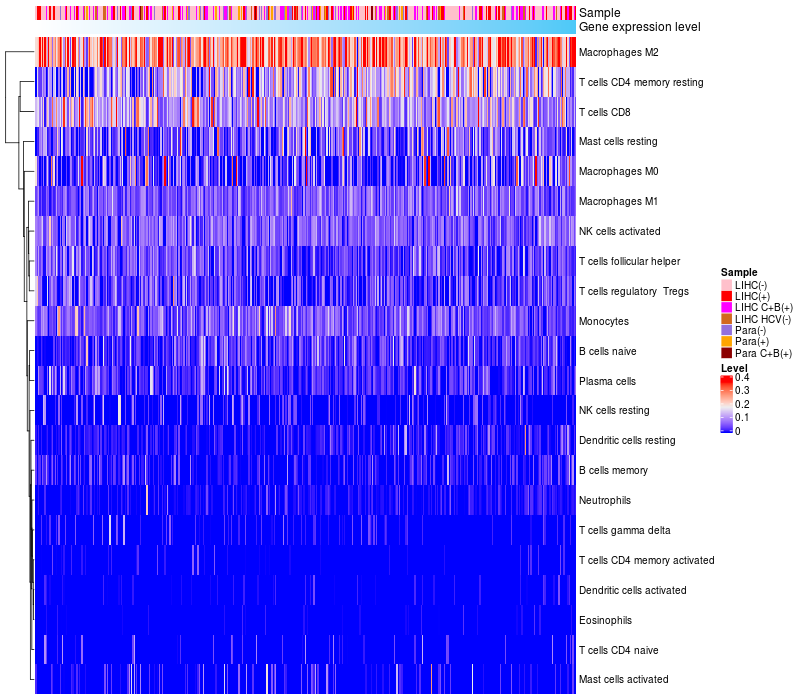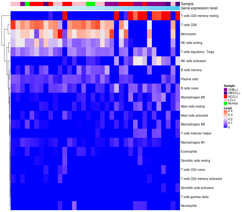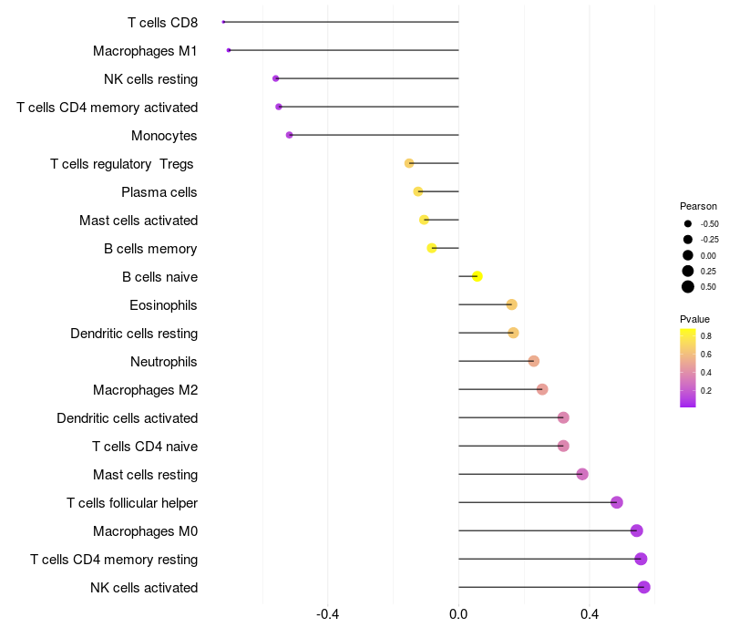 Relationship between gene expression and immune infiltrating cell level