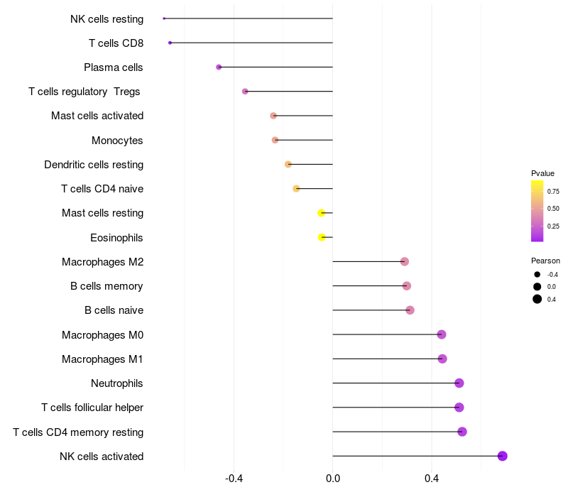 Lollipop of FBXW11 expression and immune infiltrating cell level correlation result in HBV+ Liver cirrhosis samples