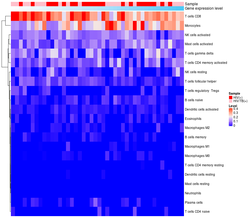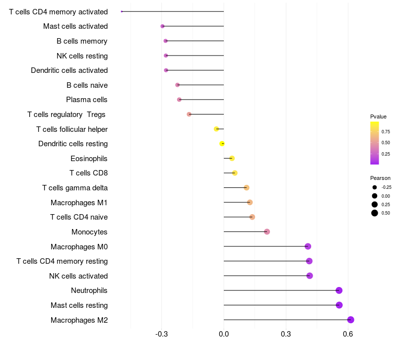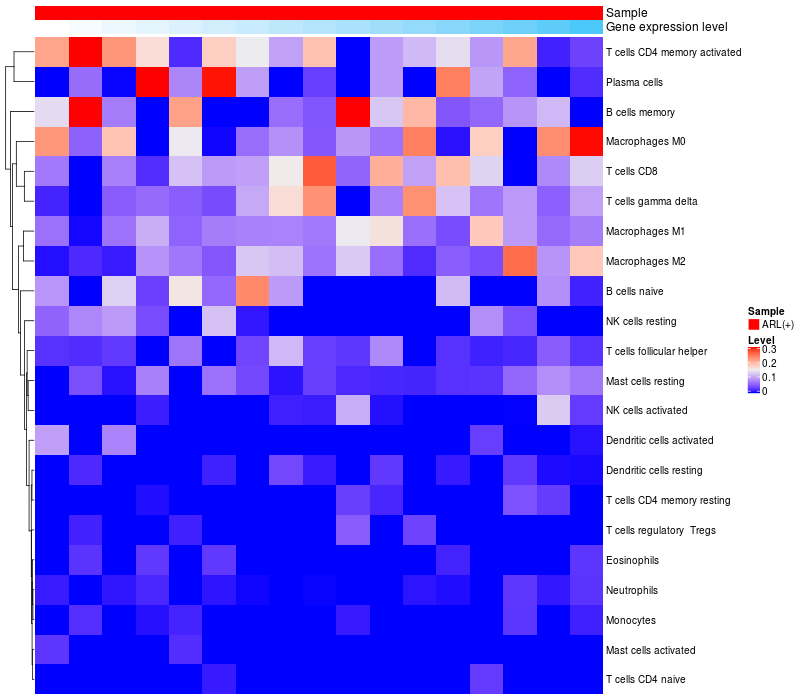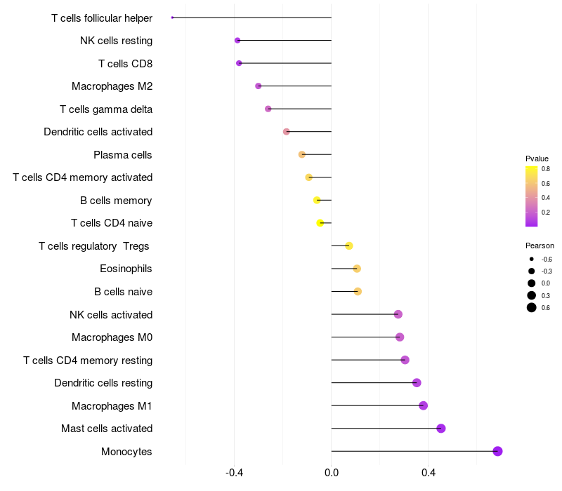 Relationship between gene expression and immune infiltrating cell level