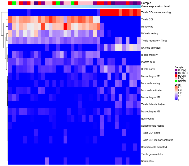 Liver hepatocellular carcinoma HCV (HBV+)(86), Liver hepatocellular carcinoma HCV (HBV-)(19), Liver hepatocellular carcinoma (HBV+)(209), Liver hepatocellular carcinoma (HBV+)(60), Paracancerous HCV (HBV+)(4), Paracancerous (HBV-)(28), Paracancerous (HBV+)(18) |