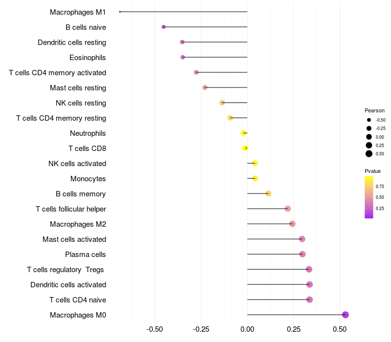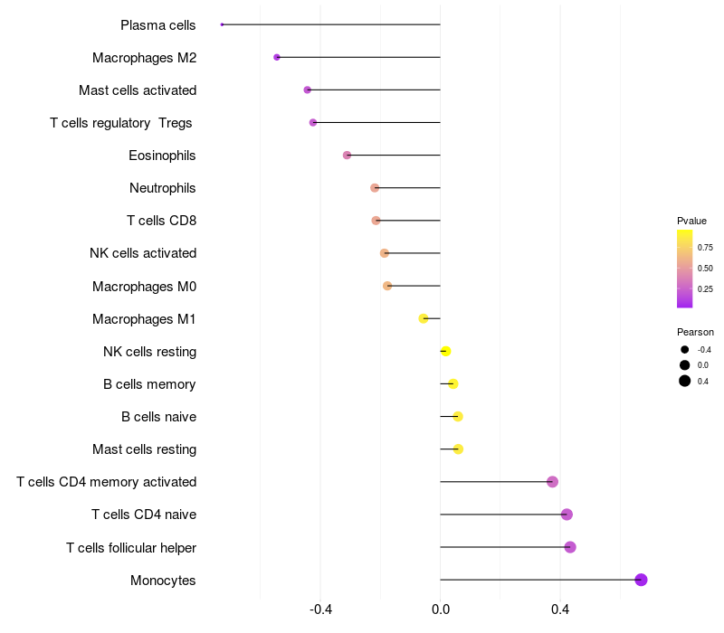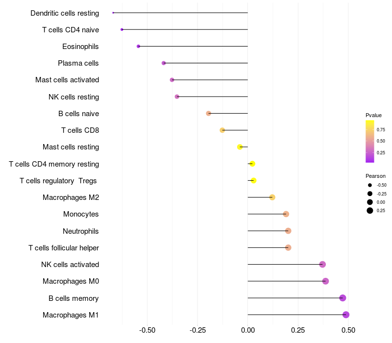 Lollipop of FEM1B expression and immune infiltrating cell level correlation result in HBV+ Chronic HBV (CHB) infection samples