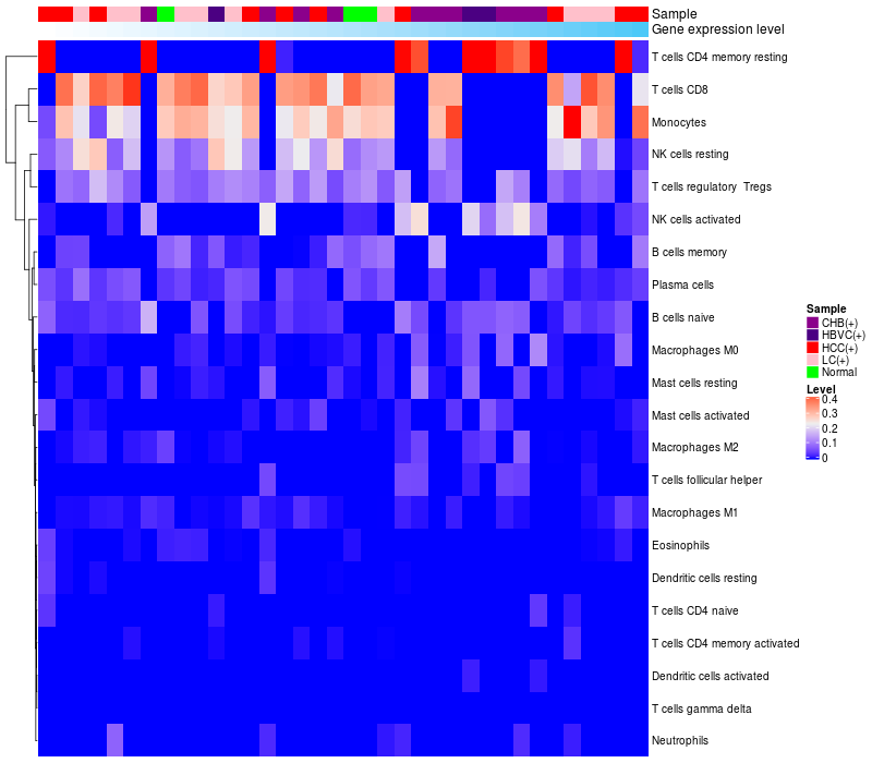 Liver hepatocellular carcinoma HCV (HBV+)(86), Liver hepatocellular carcinoma HCV (HBV-)(19), Liver hepatocellular carcinoma (HBV+)(209), Liver hepatocellular carcinoma (HBV+)(60), Paracancerous HCV (HBV+)(4), Paracancerous (HBV-)(28), Paracancerous (HBV+)(18) |