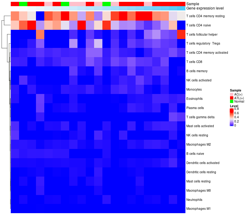 Normal (3), Asymptomatic carriers (HTLV1+)(6), Adult T-cell Leukemia-lymphoma (HTLV1+)(12) |