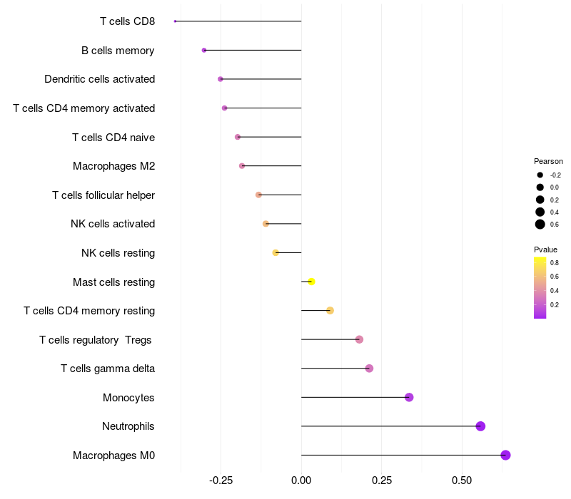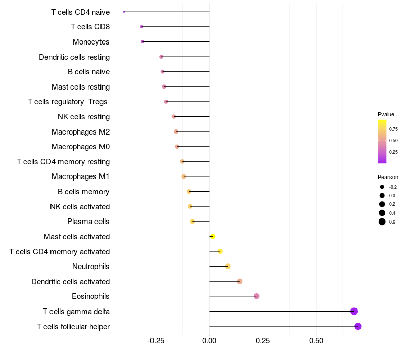 Lollipop of FES expression and immune infiltrating cell level correlation result in HTLV1+ samples