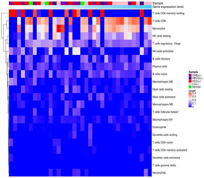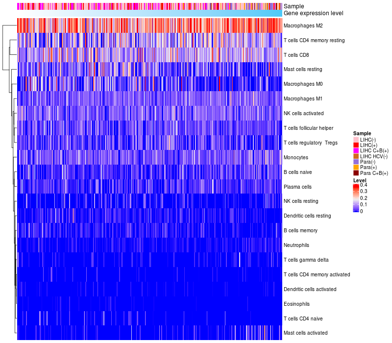Liver hepatocellular carcinoma HCV (HBV+)(86), Liver hepatocellular carcinoma HCV (HBV-)(19), Liver hepatocellular carcinoma (HBV+)(209), Liver hepatocellular carcinoma (HBV+)(60), Paracancerous HCV (HBV+)(4), Paracancerous (HBV-)(28), Paracancerous (HBV+)(18) |