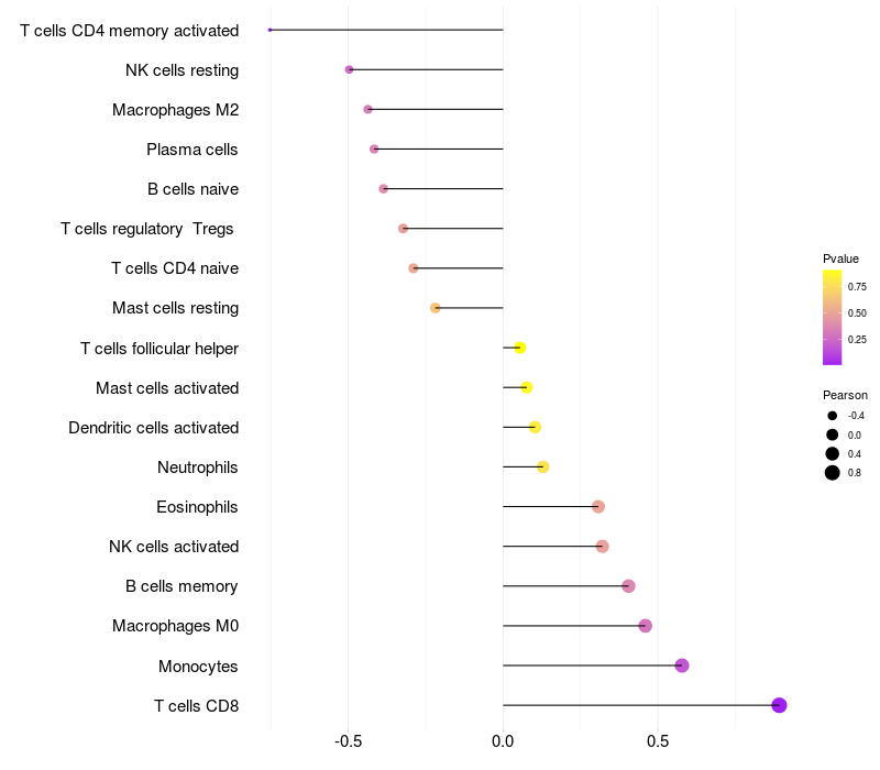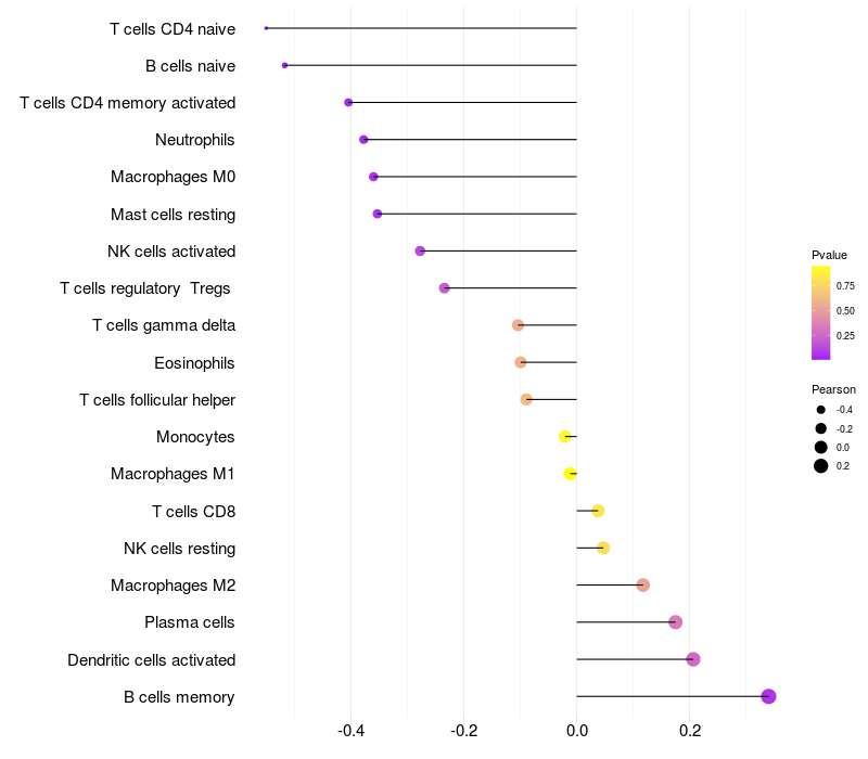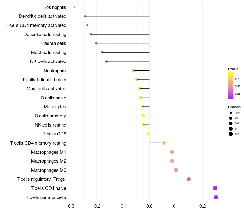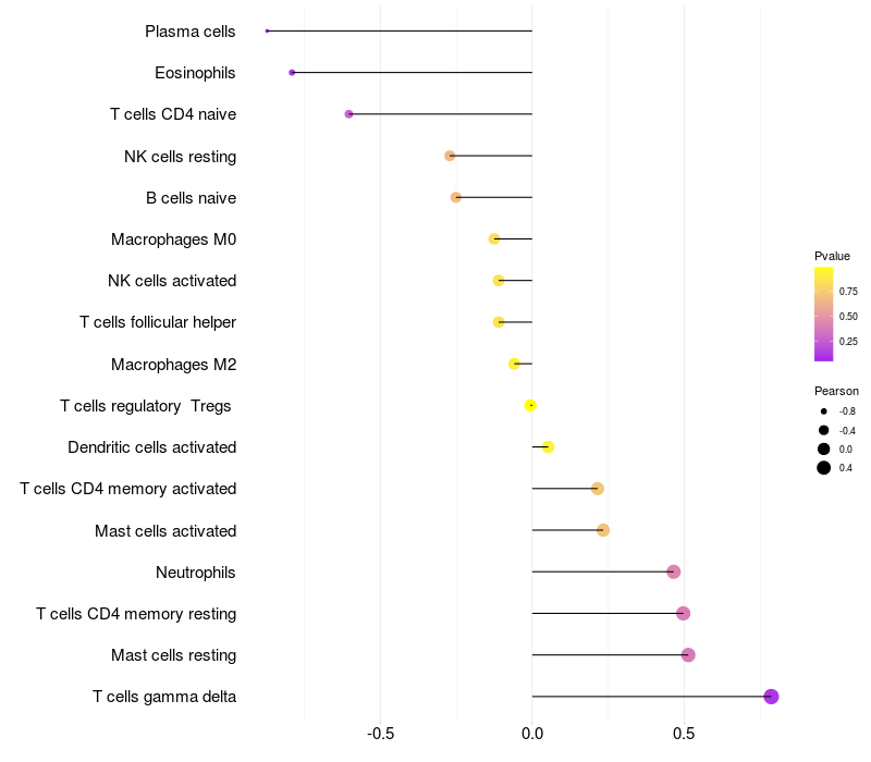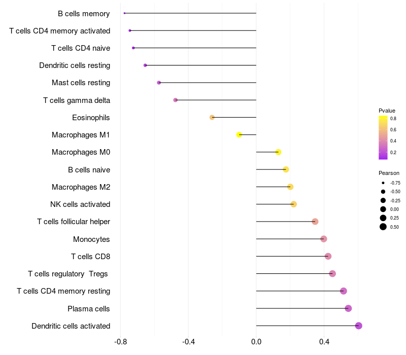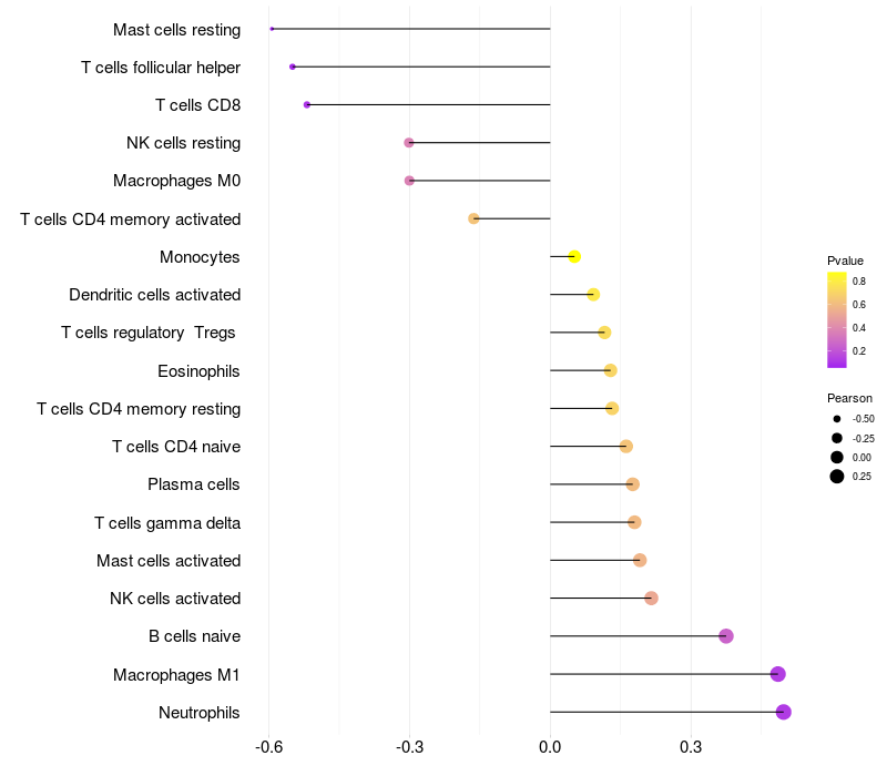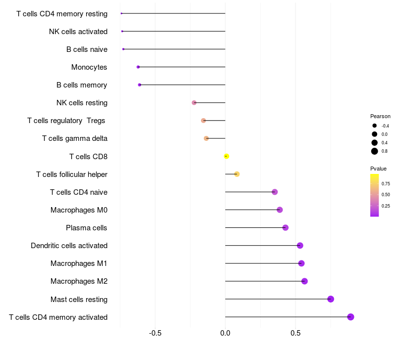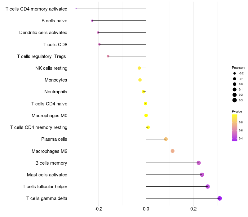 Lollipop of FGD5 expression and immune infiltrating cell level correlation result in EBV+ samples