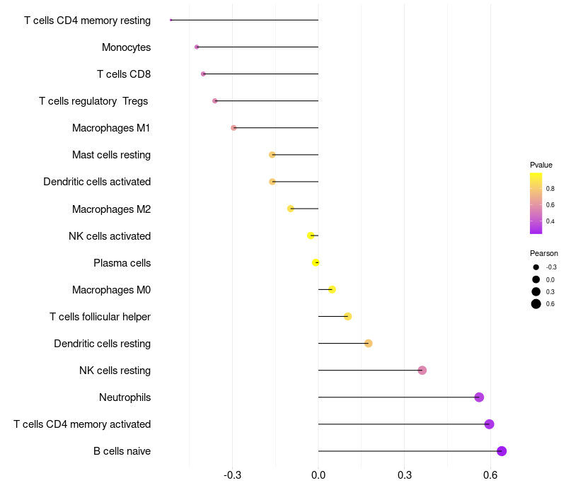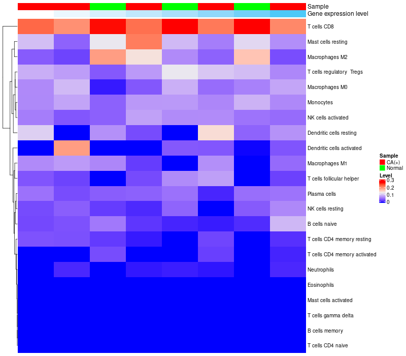 Relationship between gene expression and immune infiltrating cell level