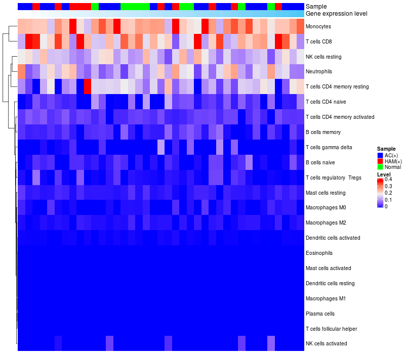Relationship between gene expression and immune infiltrating cell level