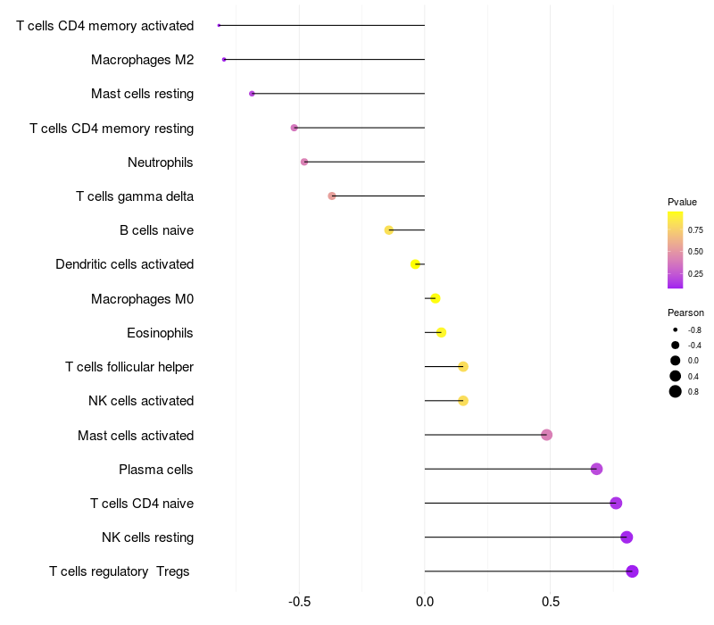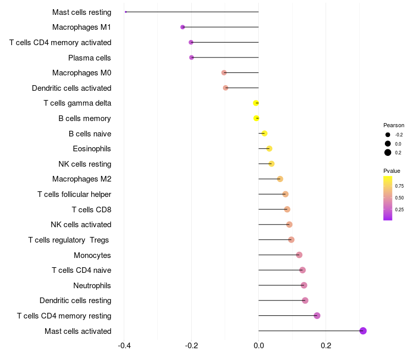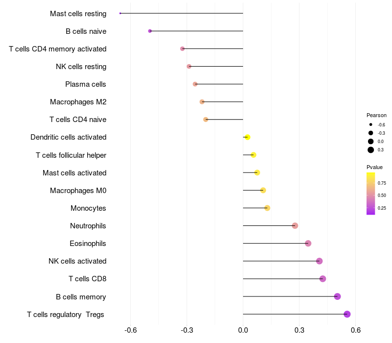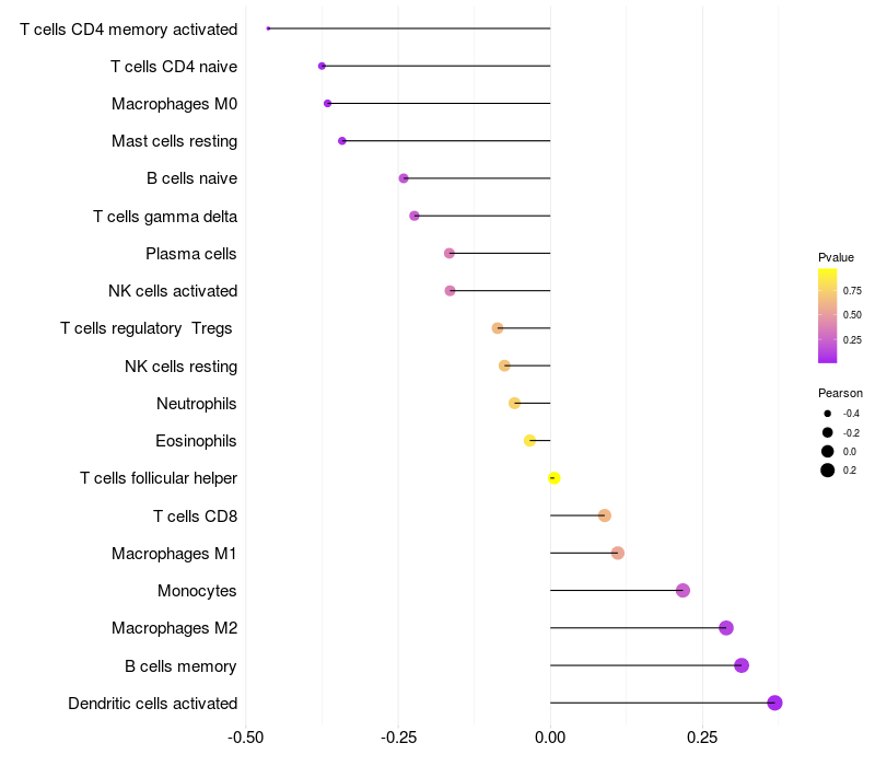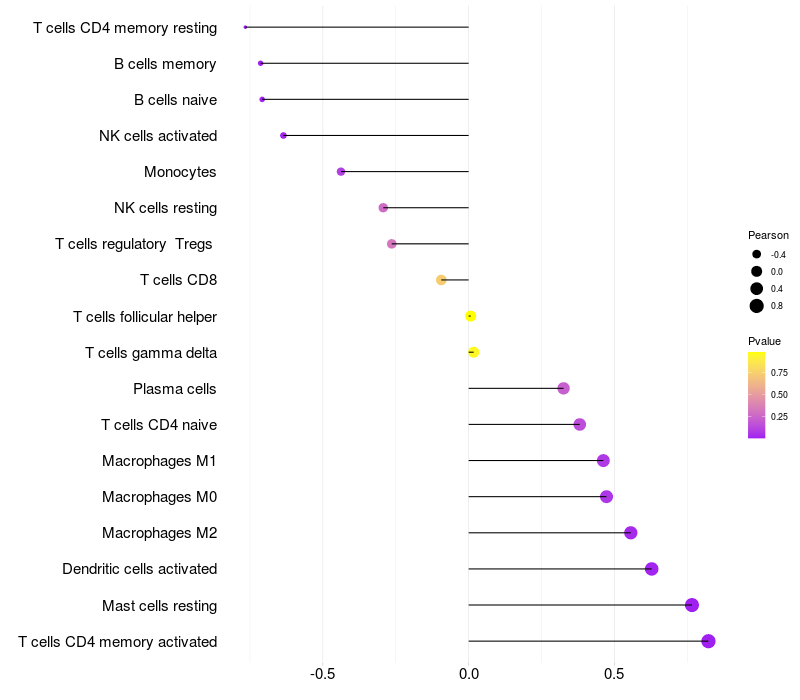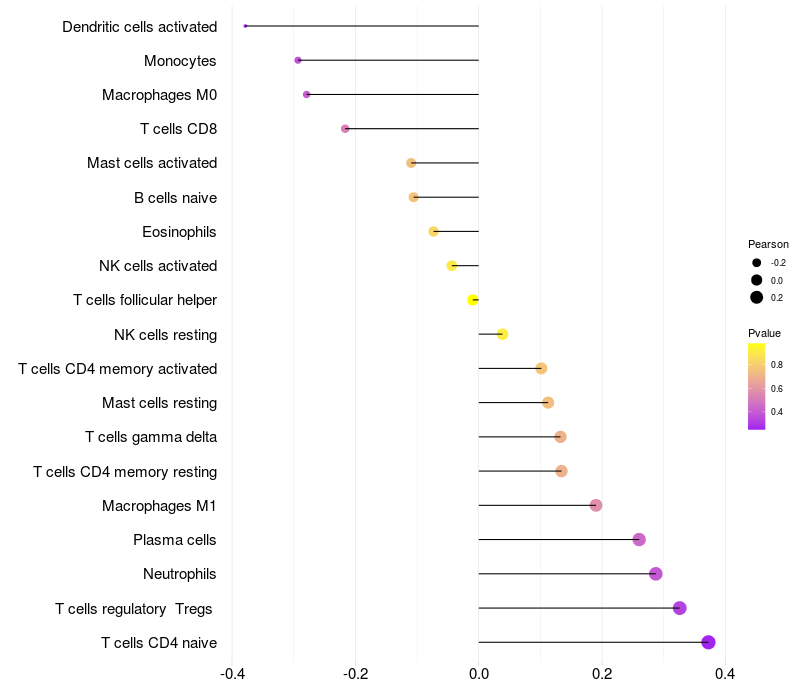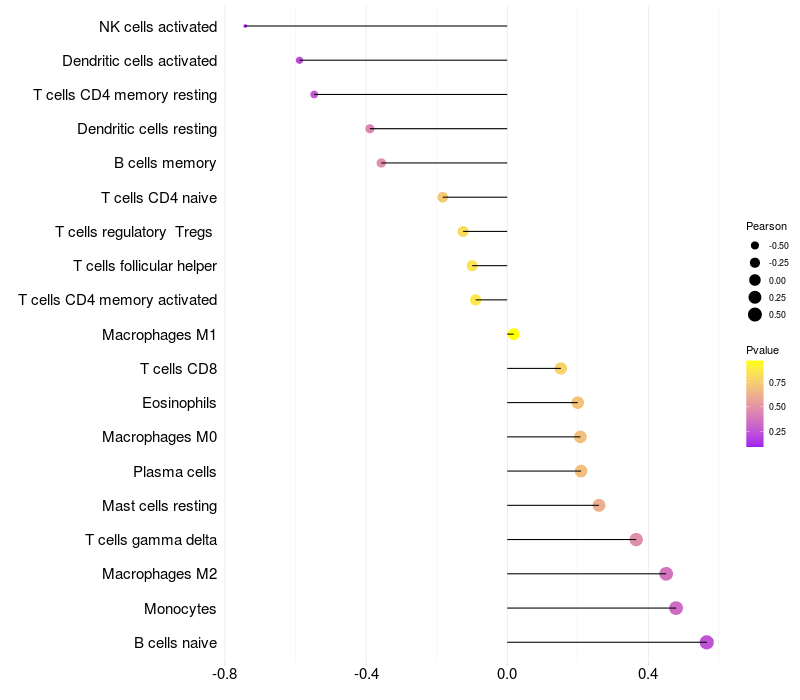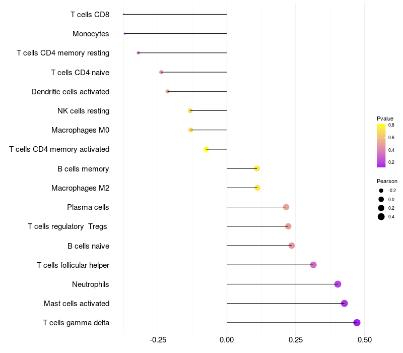 Lollipop of FGF12 expression and immune infiltrating cell level correlation result in EBV+ samples
