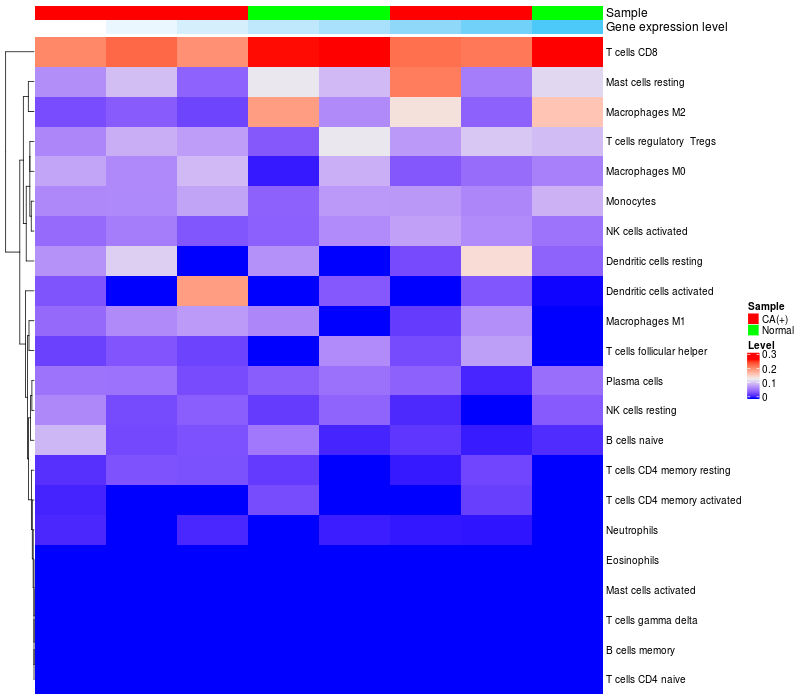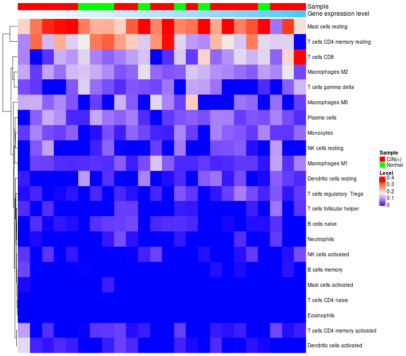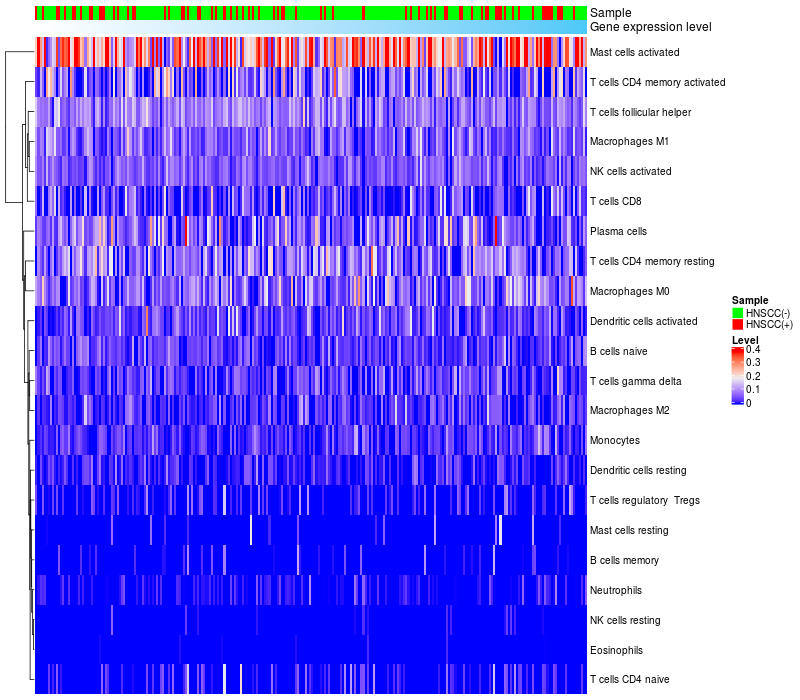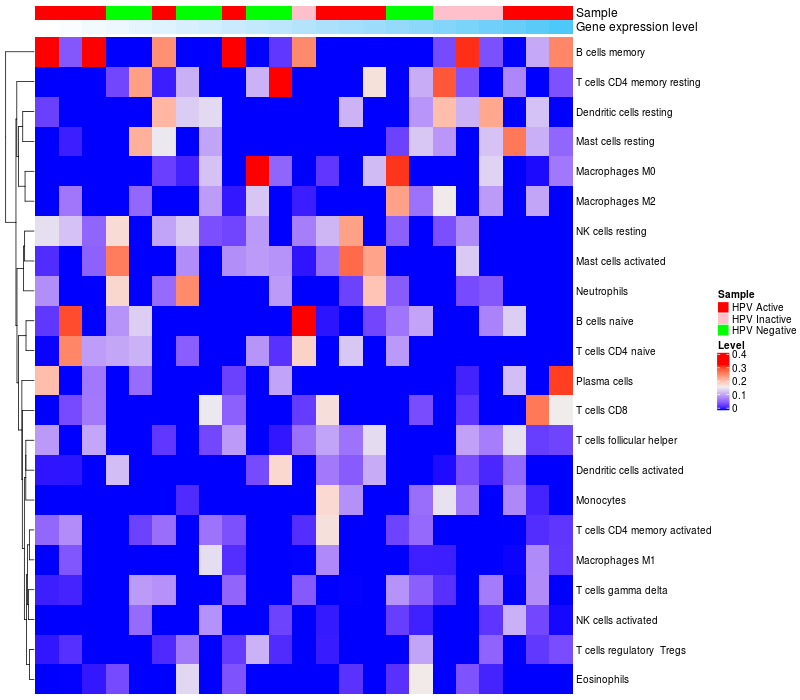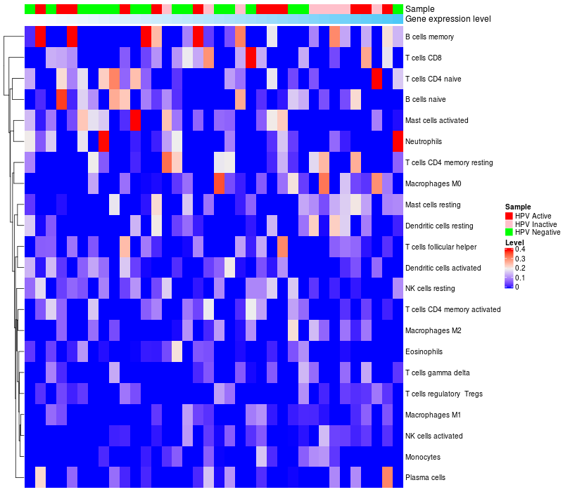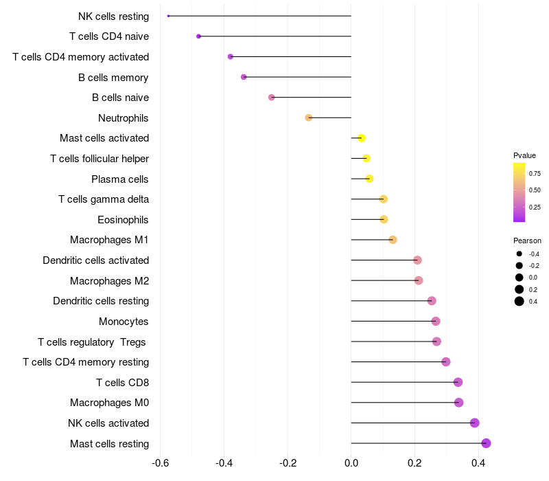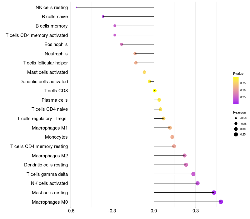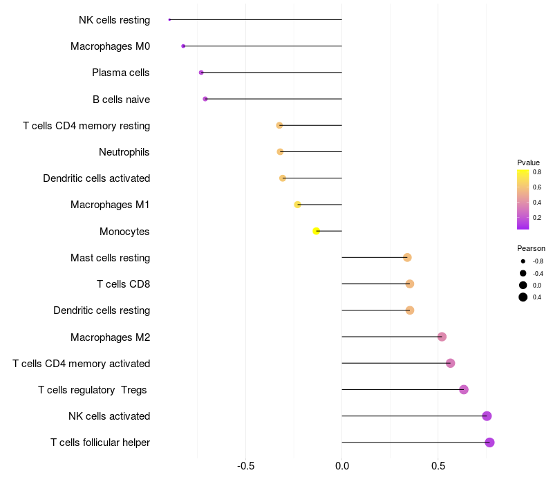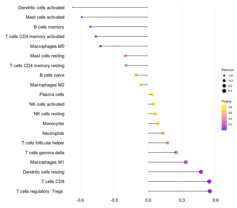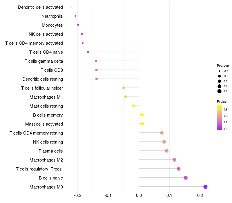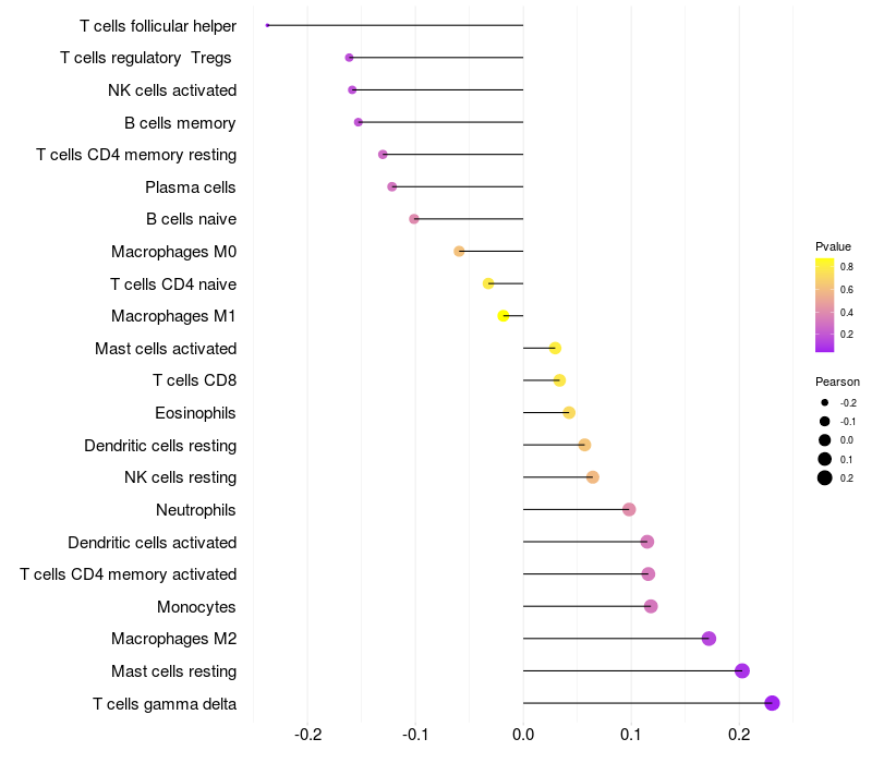 Lollipop of FGF18 expression and immune infiltrating cell level correlation result in HPV+ samples