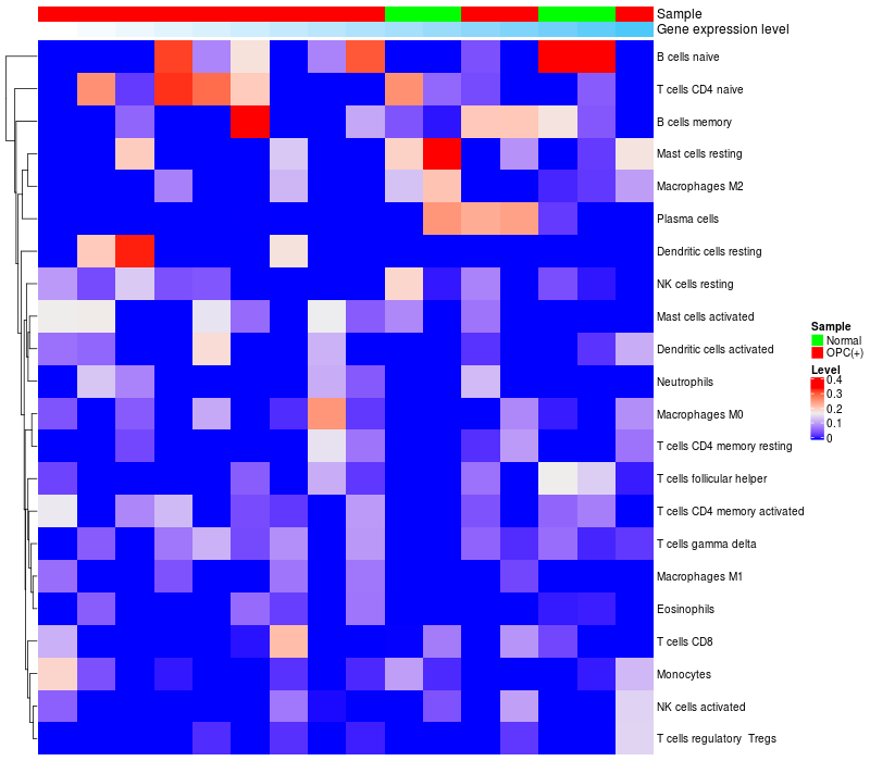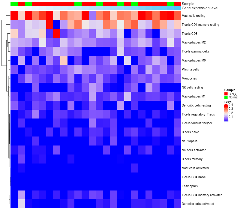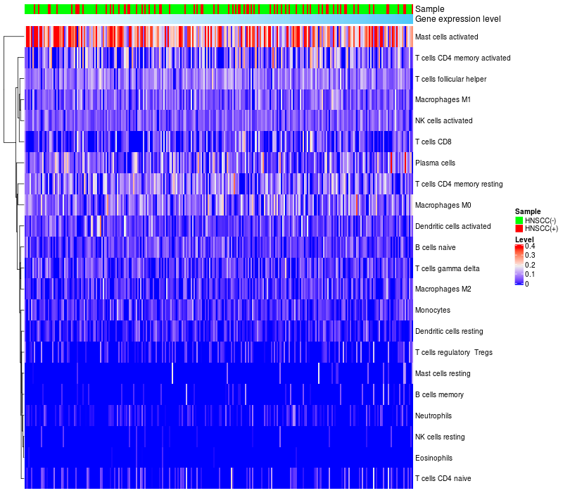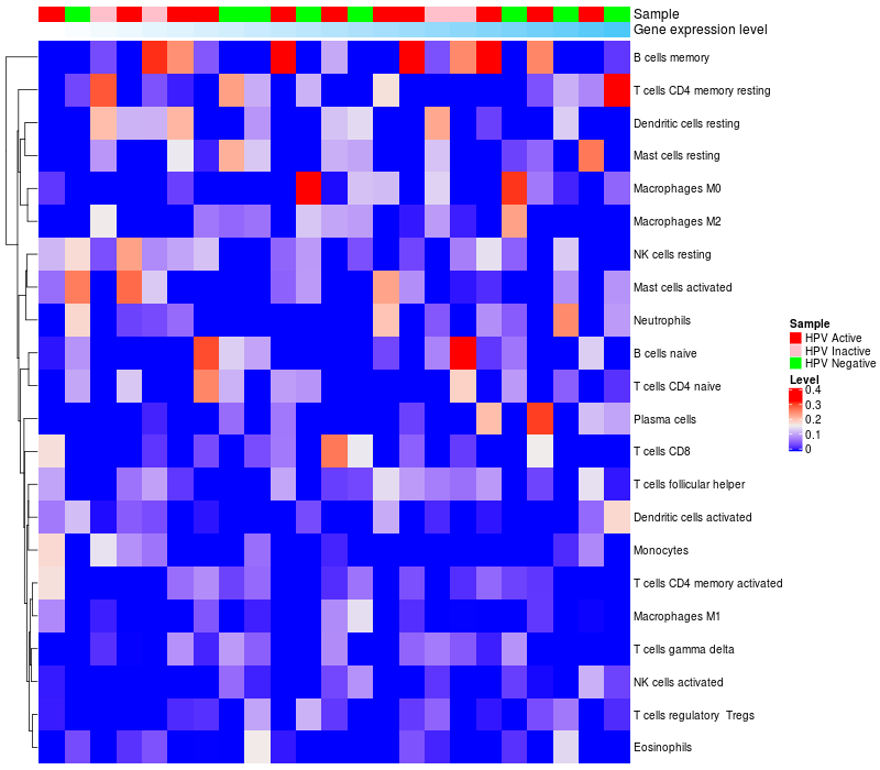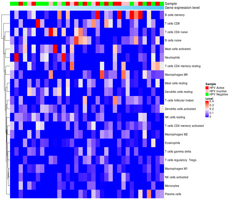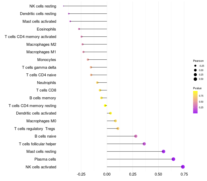Lollipop of FGF20 expression and immune infiltrating cell level correlation result in HPV+ samples