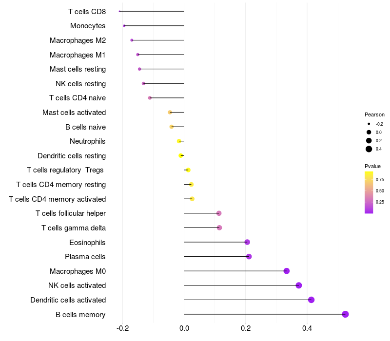 Lollipop of FGFR1 expression and immune infiltrating cell level correlation result in HBV+ samples