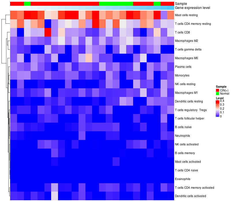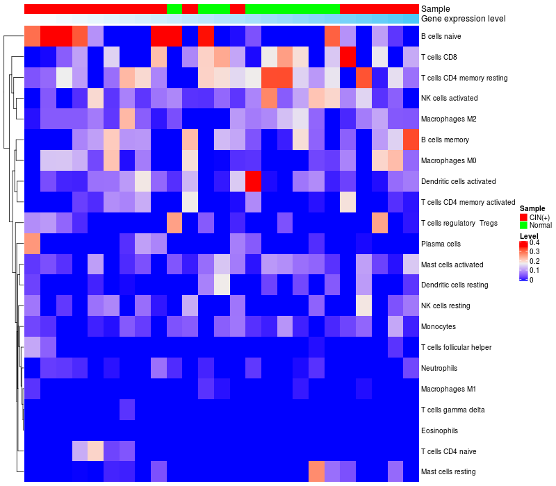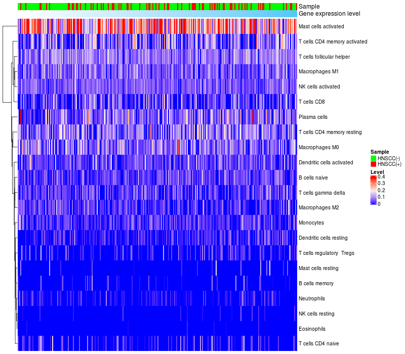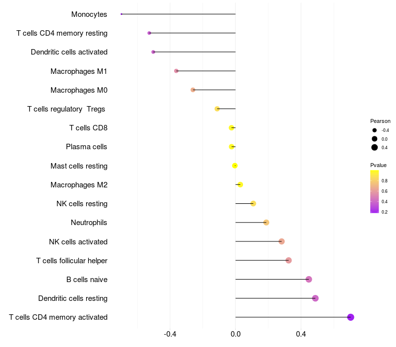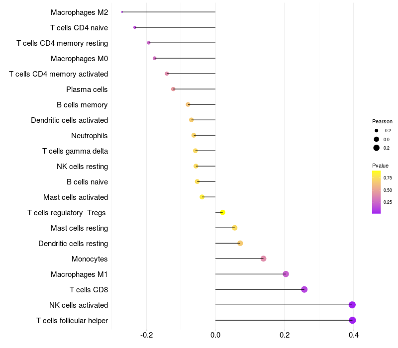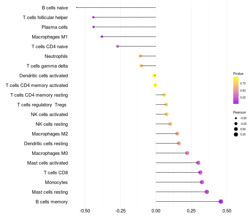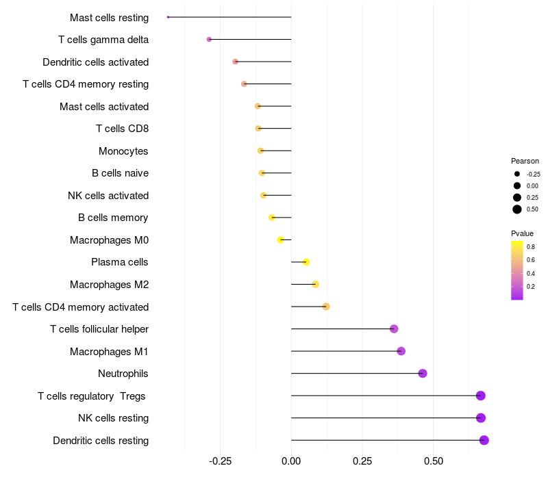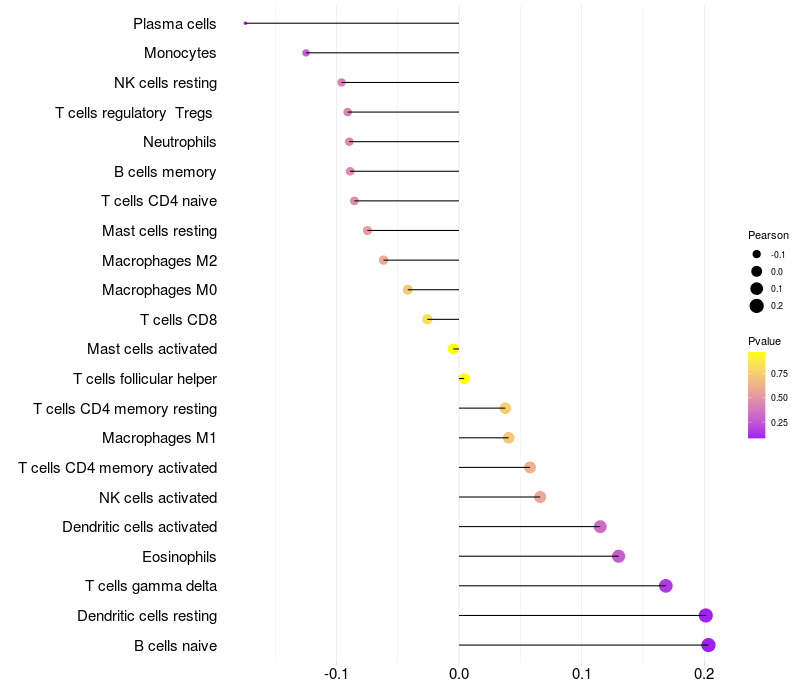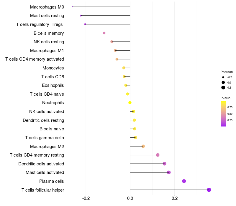 Lollipop of FGFR3 expression and immune infiltrating cell level correlation result in HPV+ samples
