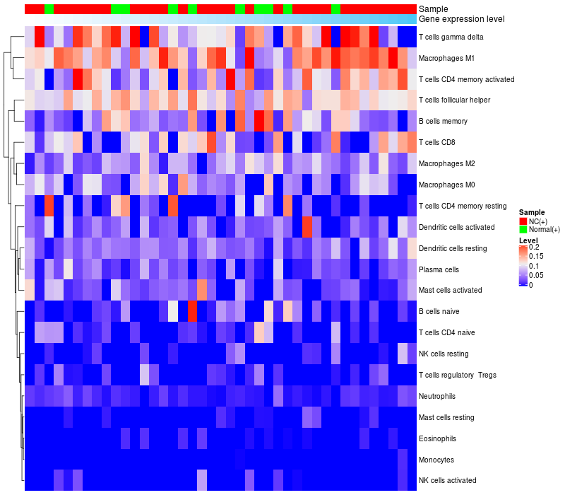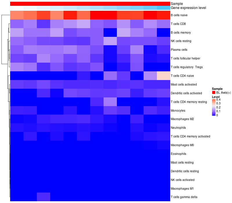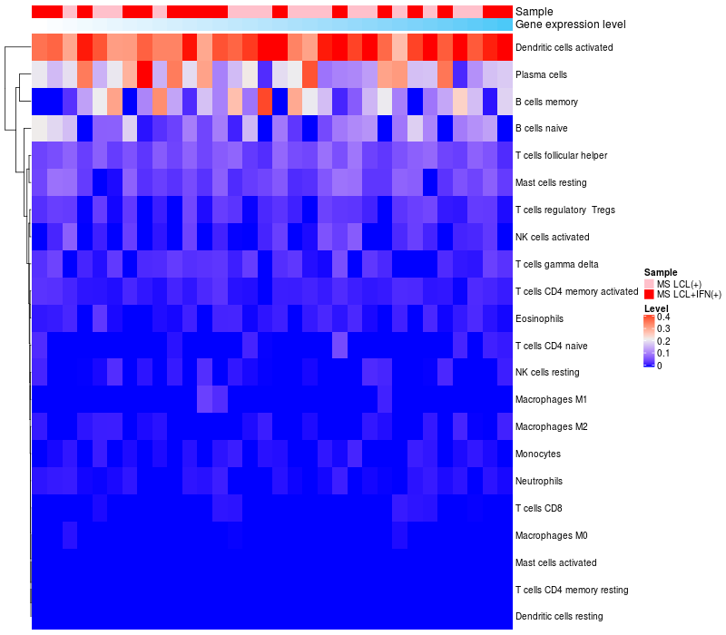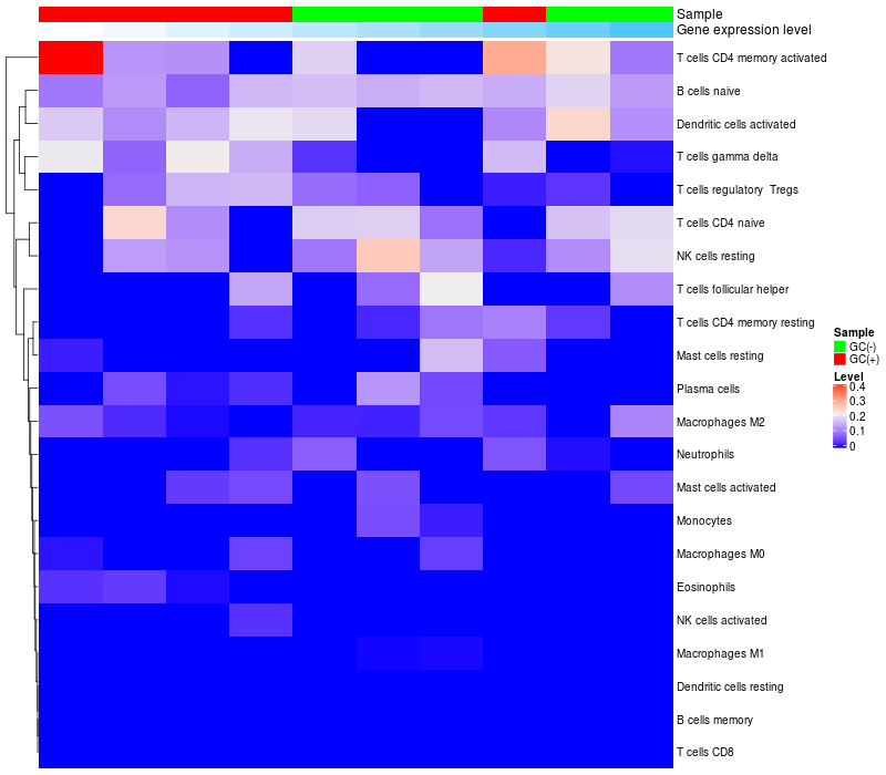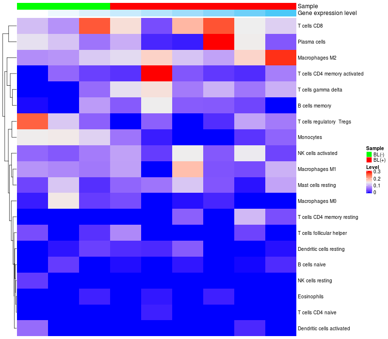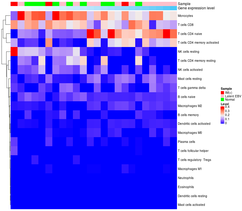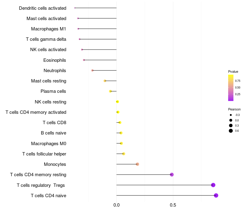 Lollipop of FHIT expression and immune infiltrating cell level correlation result in EBV+ samples