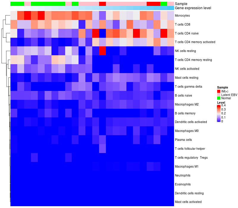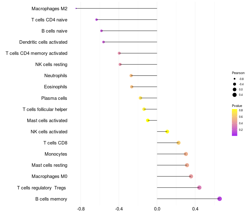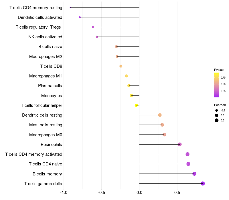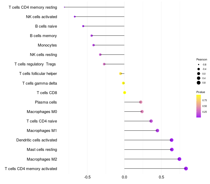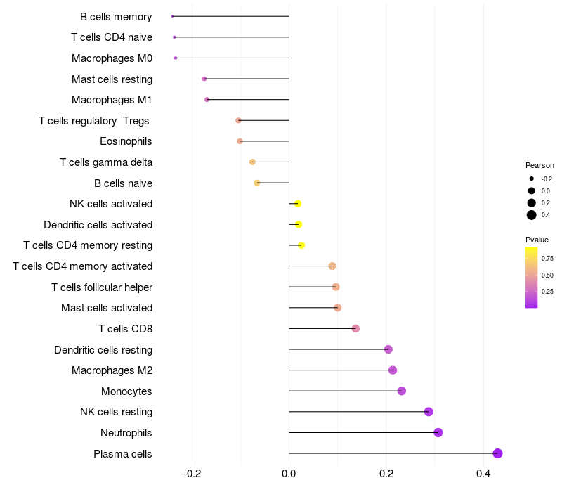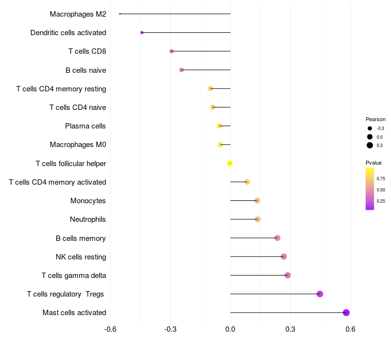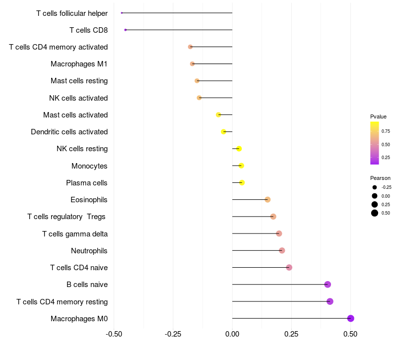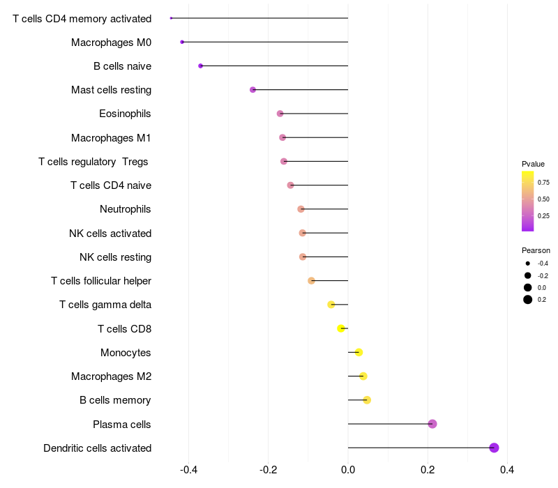 Lollipop of FIGN expression and immune infiltrating cell level correlation result in EBV+ samples