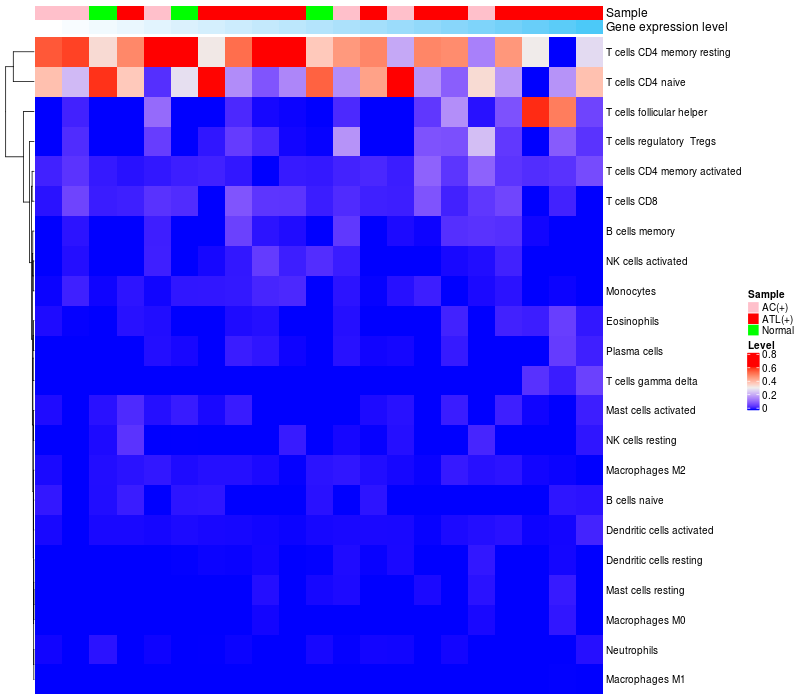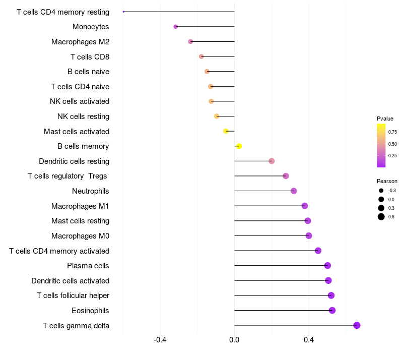 Relationship between gene expression and immune infiltrating cell level