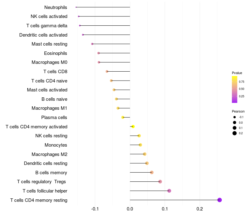 Lollipop of FLNB expression and immune infiltrating cell level correlation result in HBV+ samples