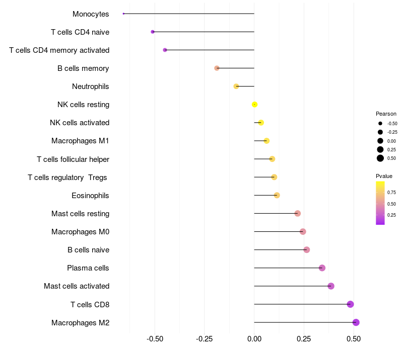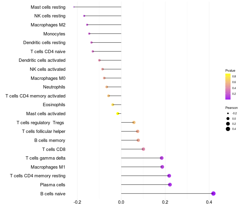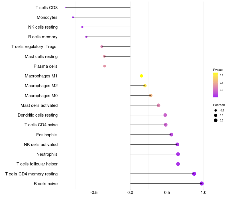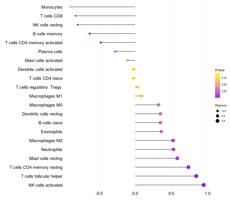 Lollipop of FLRT2 expression and immune infiltrating cell level correlation result in HBV+ Liver cirrhosis samples