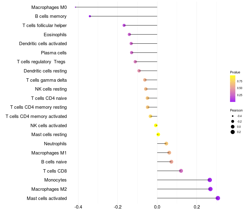 Lollipop of FLVCR2 expression and immune infiltrating cell level correlation result in HBV+ samples