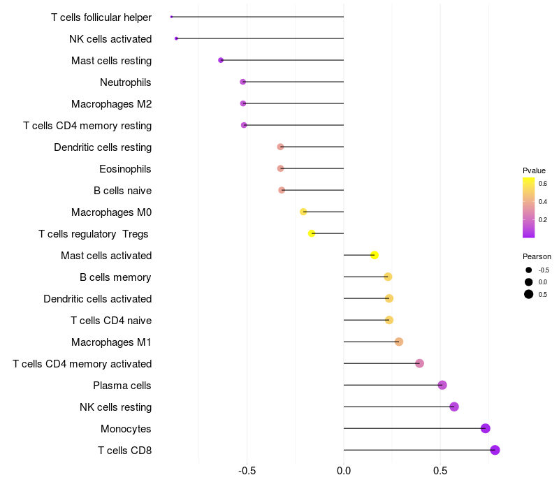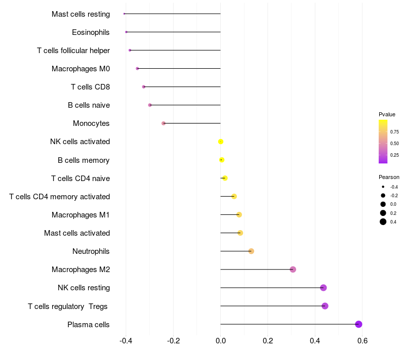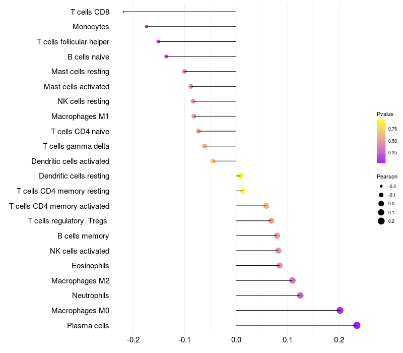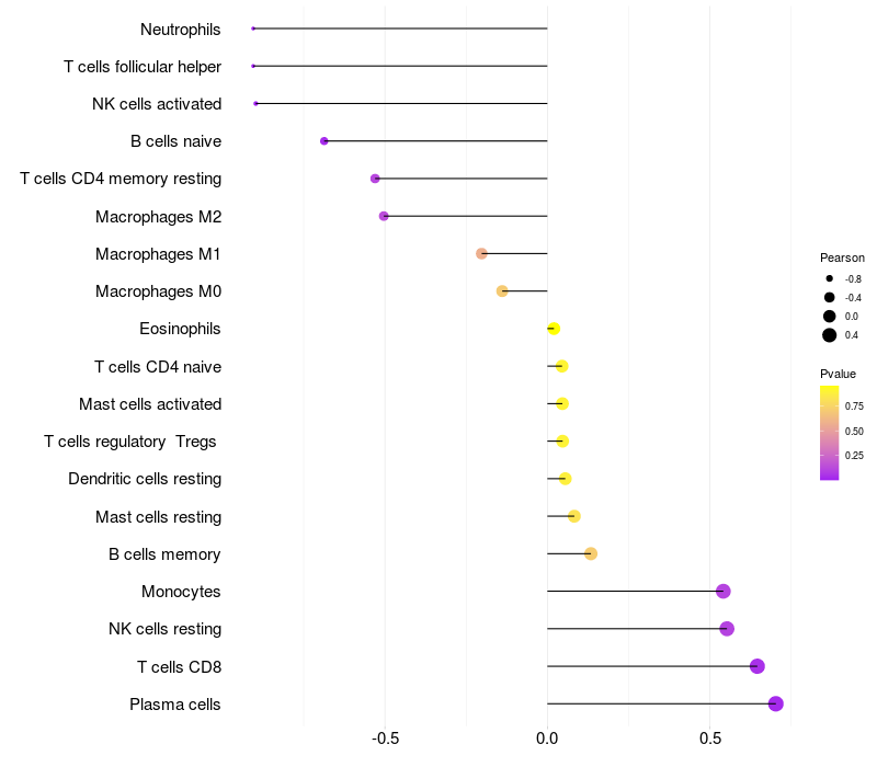 Lollipop of FMN1 expression and immune infiltrating cell level correlation result in HBV+ Liver cirrhosis samples