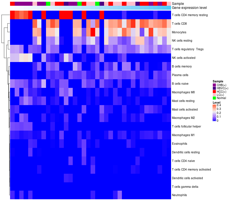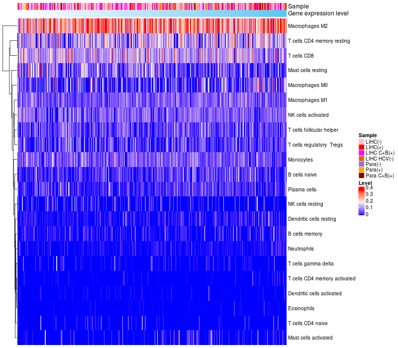 Liver hepatocellular carcinoma HCV (HBV+)(86), Liver hepatocellular carcinoma HCV (HBV-)(19), Liver hepatocellular carcinoma (HBV+)(209), Liver hepatocellular carcinoma (HBV+)(60), Paracancerous HCV (HBV+)(4), Paracancerous (HBV-)(28), Paracancerous (HBV+)(18) |