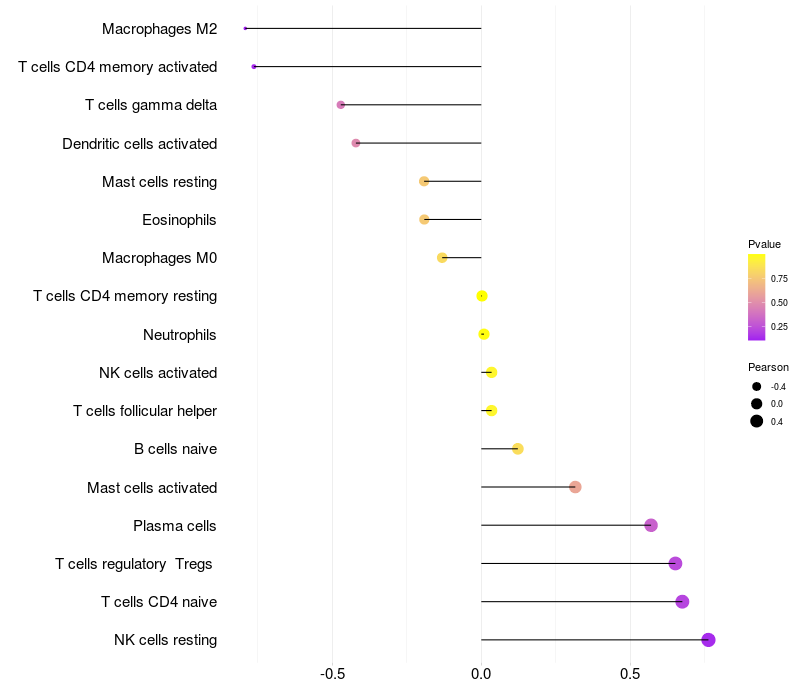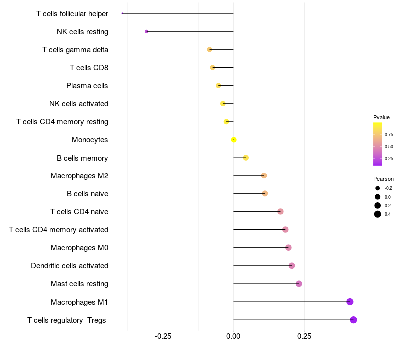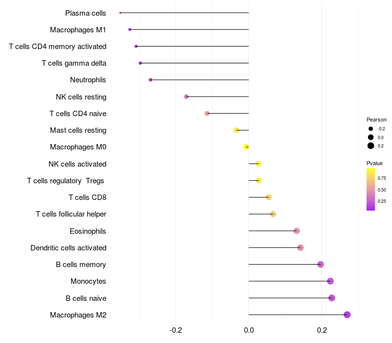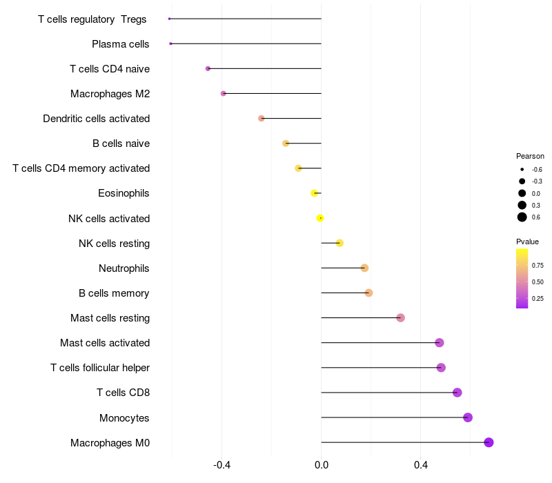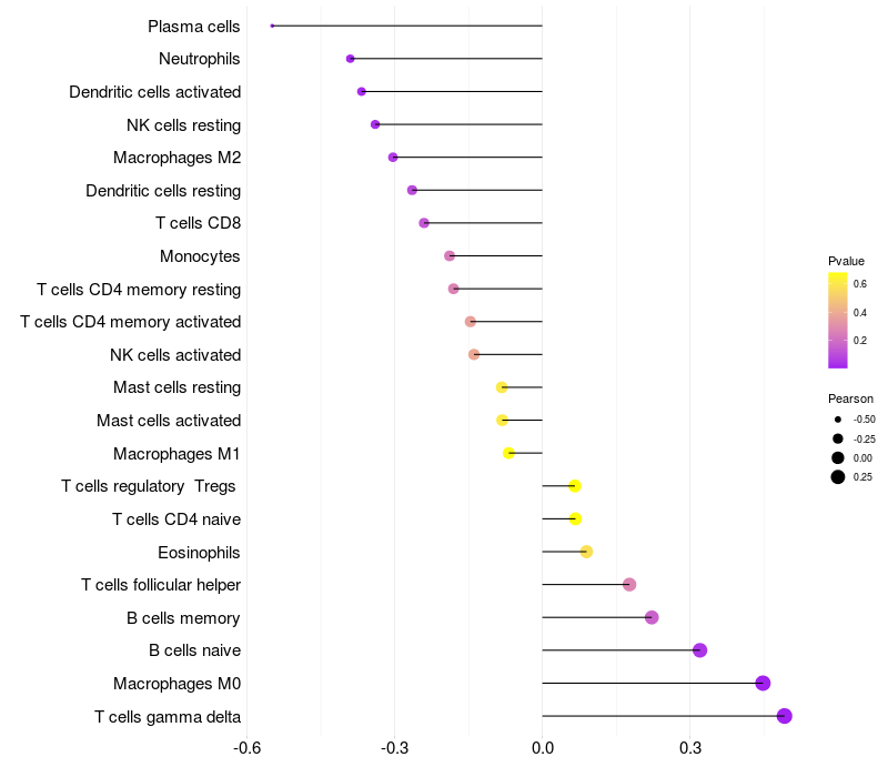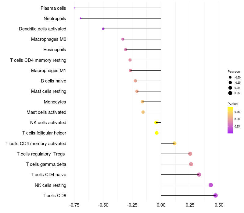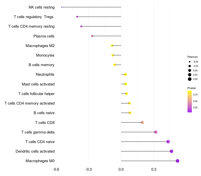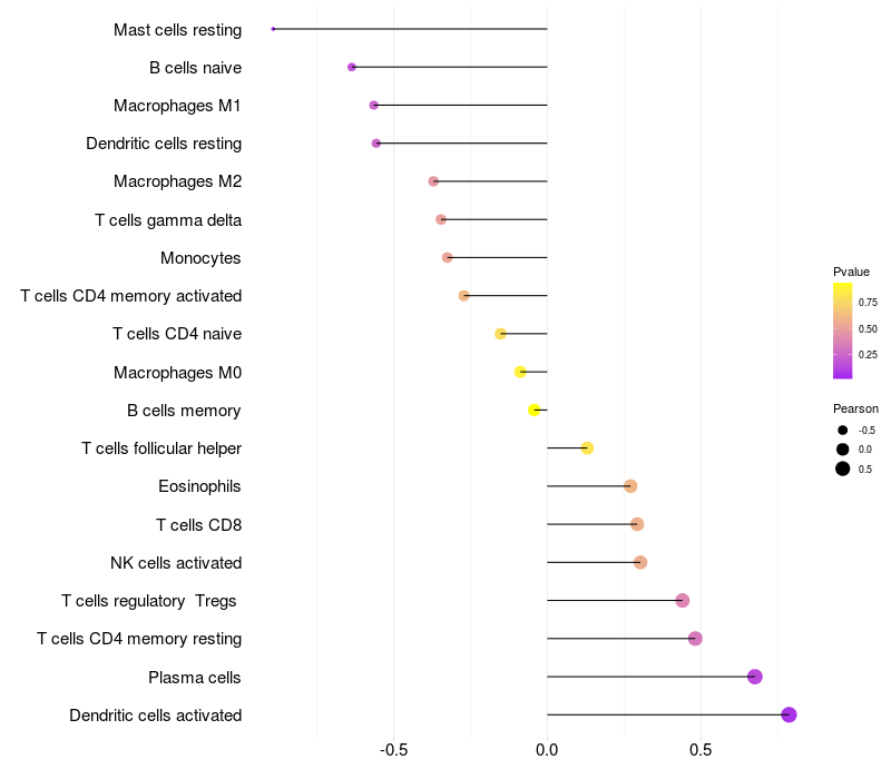 Lollipop of FMNL3 expression and immune infiltrating cell level correlation result in EBV+ samples