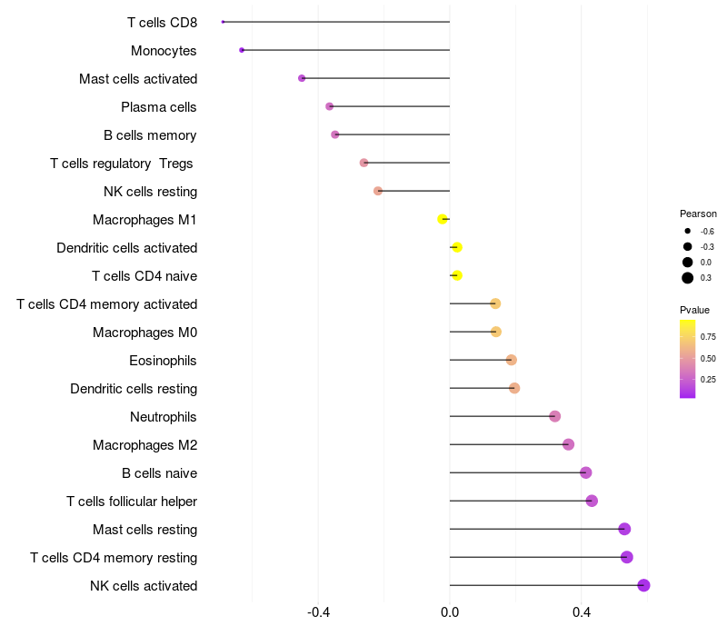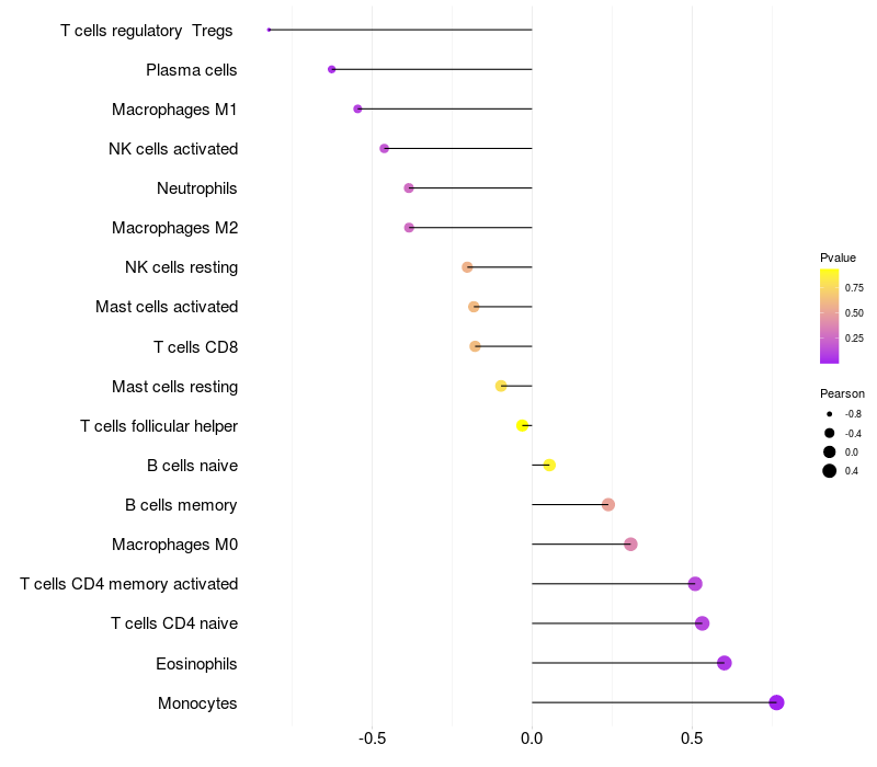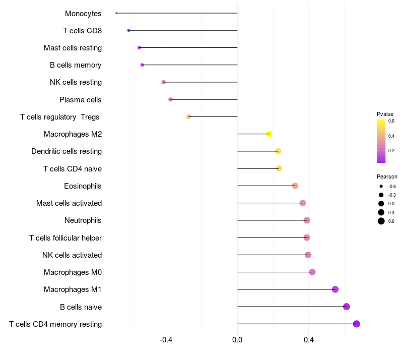 Lollipop of FN3KRP expression and immune infiltrating cell level correlation result in HBV+ Chronic HBV (CHB) infection samples