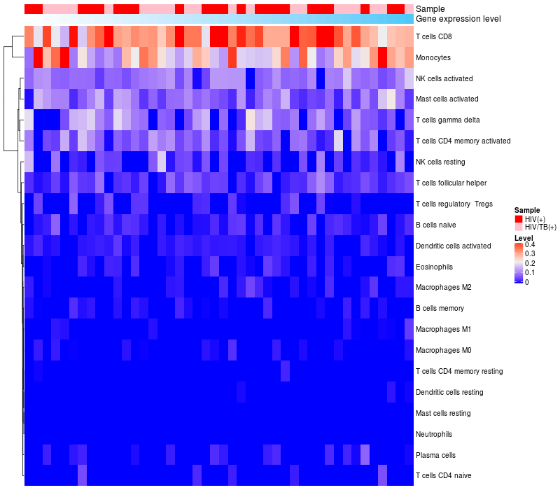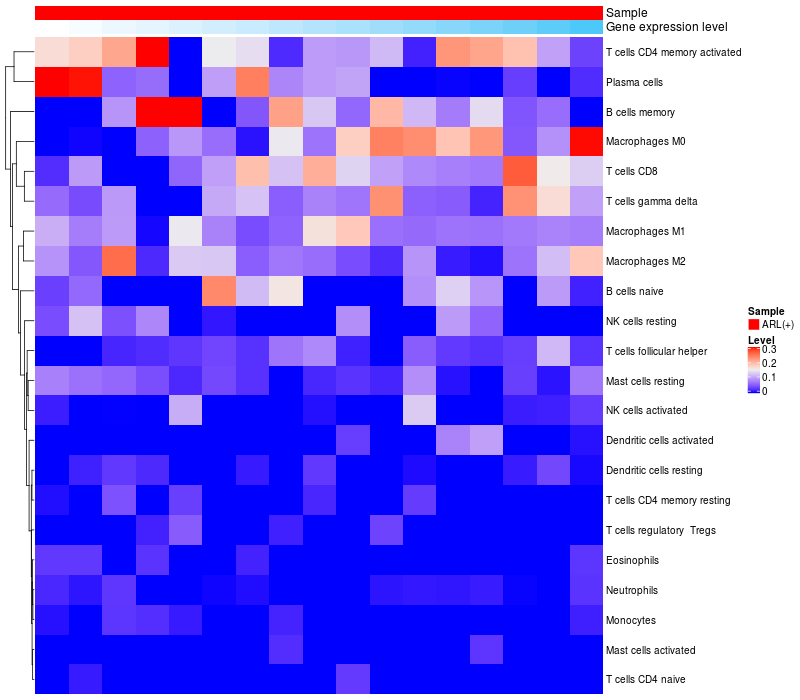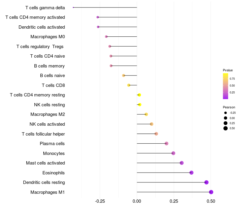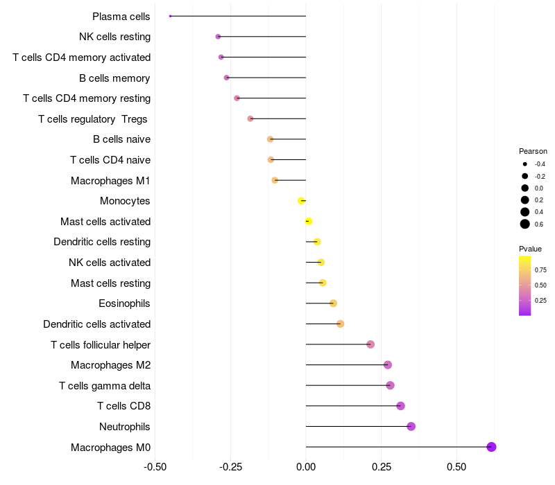 Relationship between gene expression and immune infiltrating cell level
