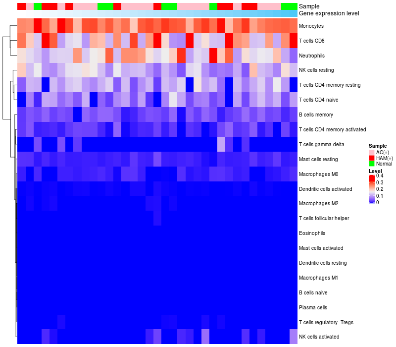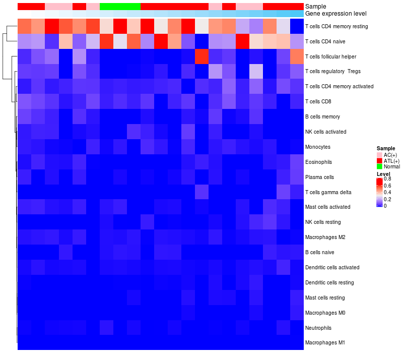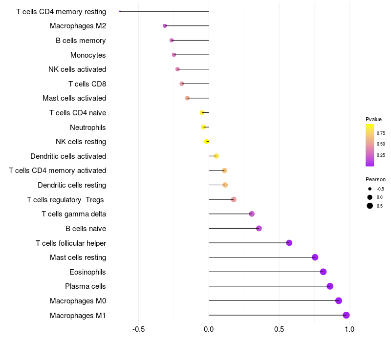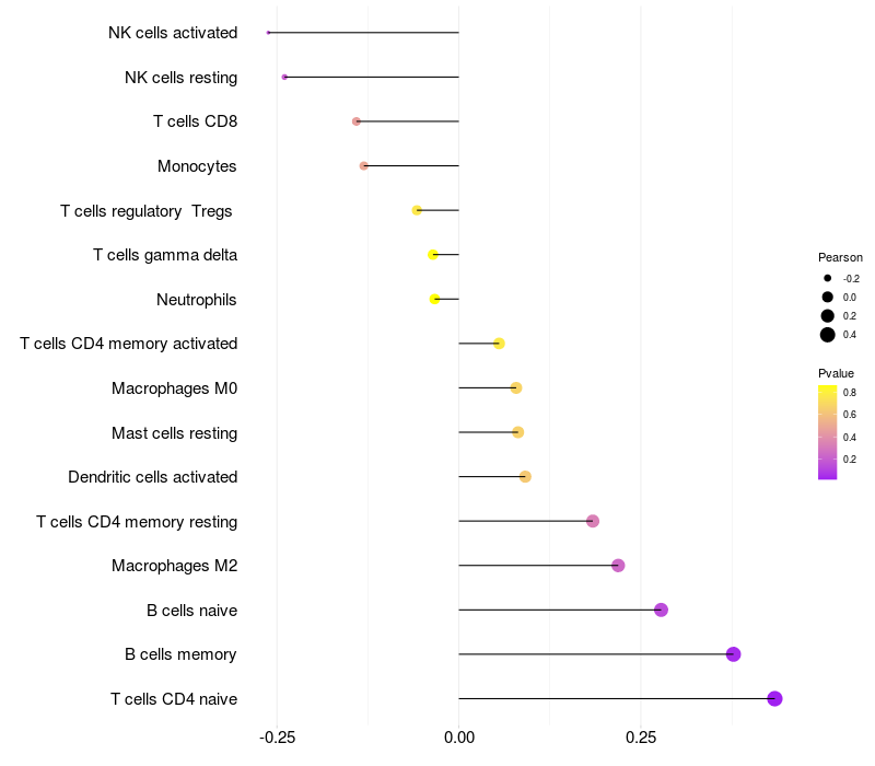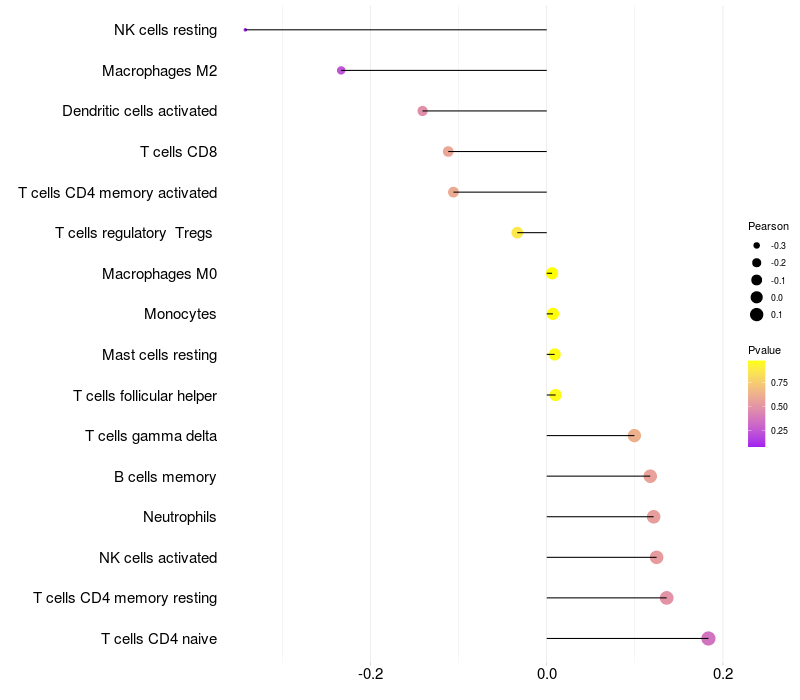 Lollipop of FRMD6 expression and immune infiltrating cell level correlation result in HTLV1+ samples