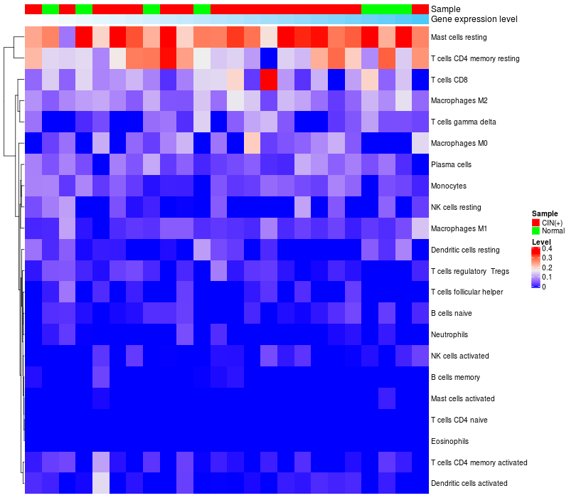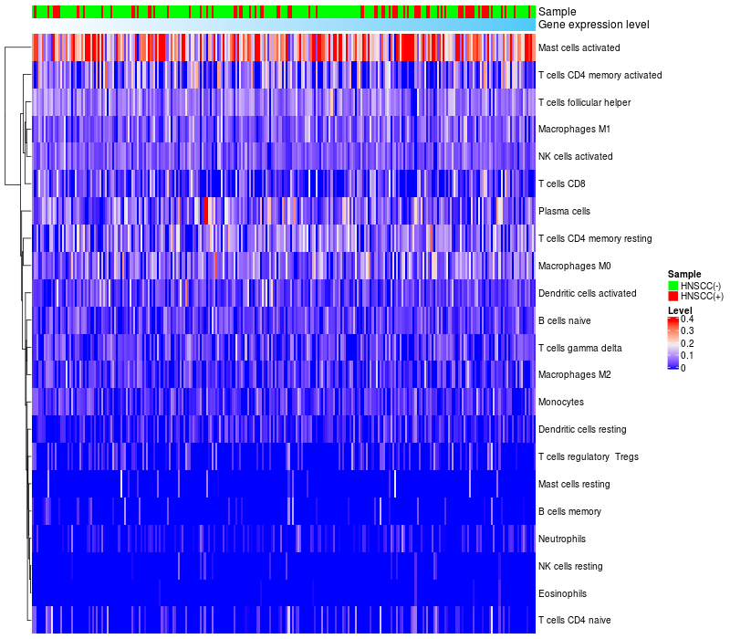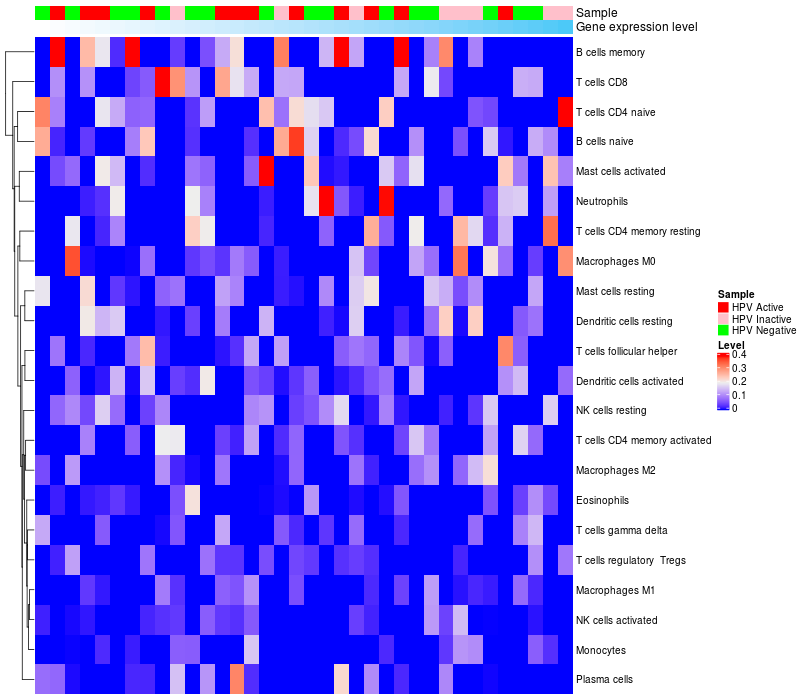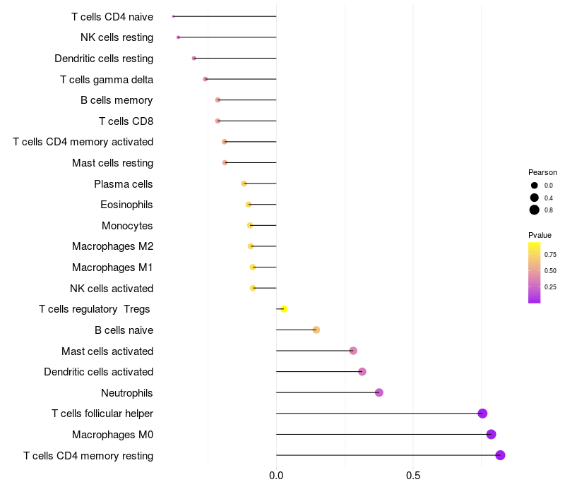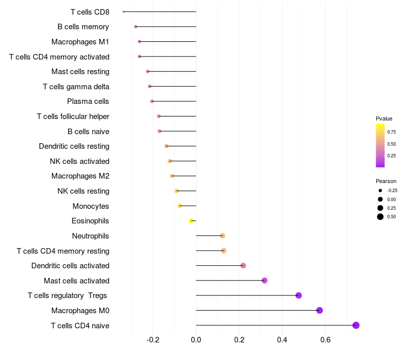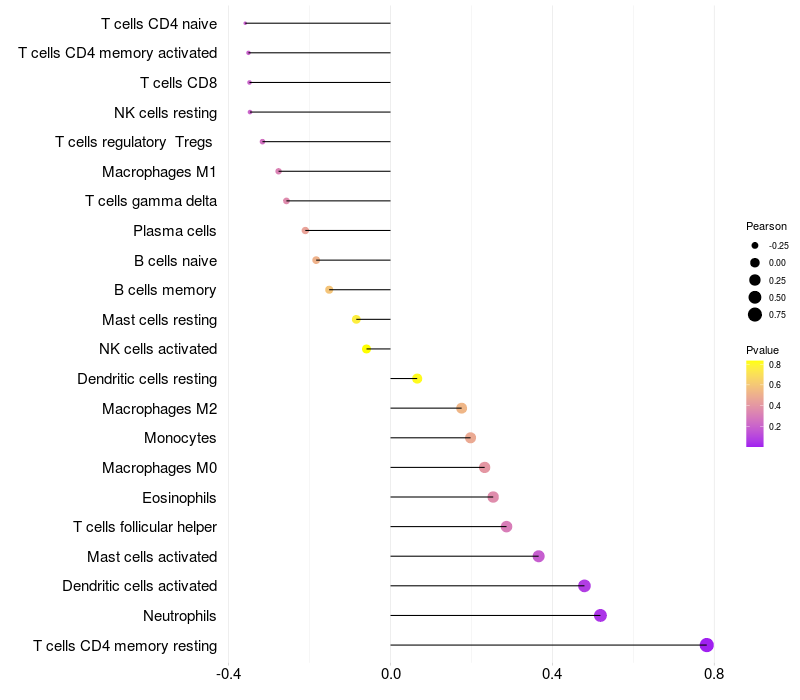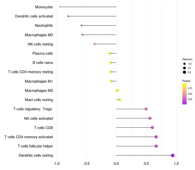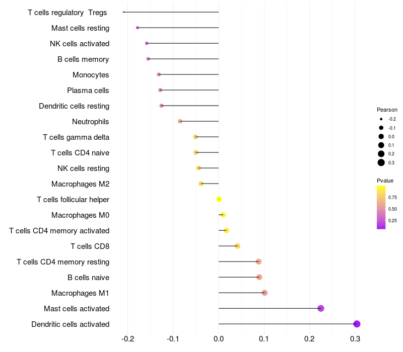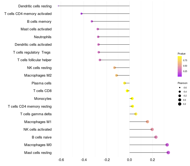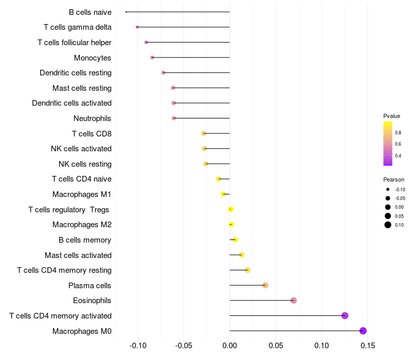 Lollipop of FRMPD4 expression and immune infiltrating cell level correlation result in HPV+ samples
