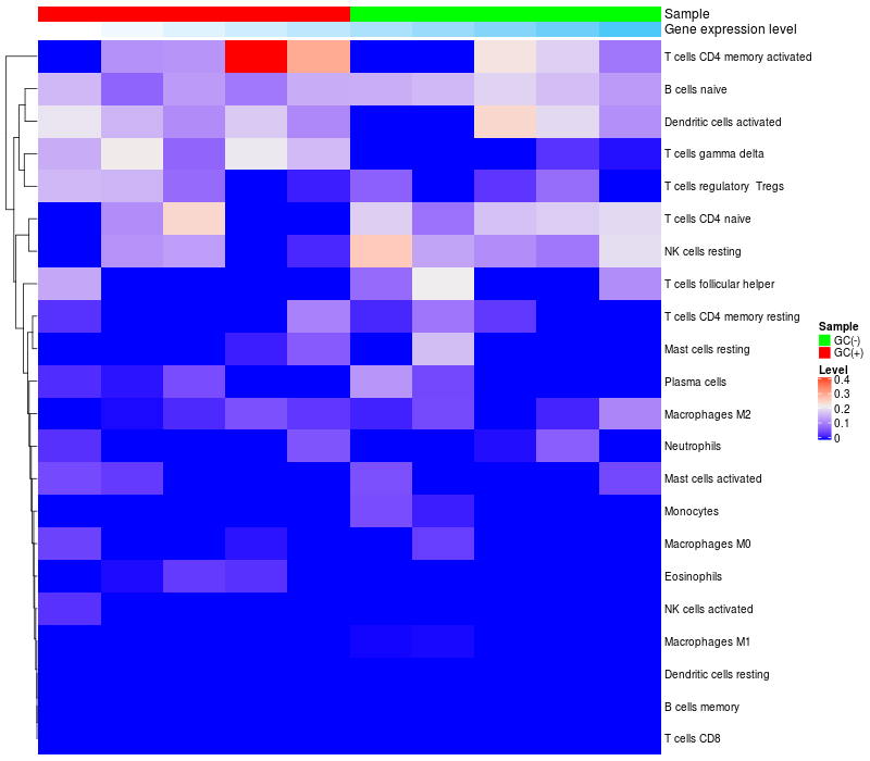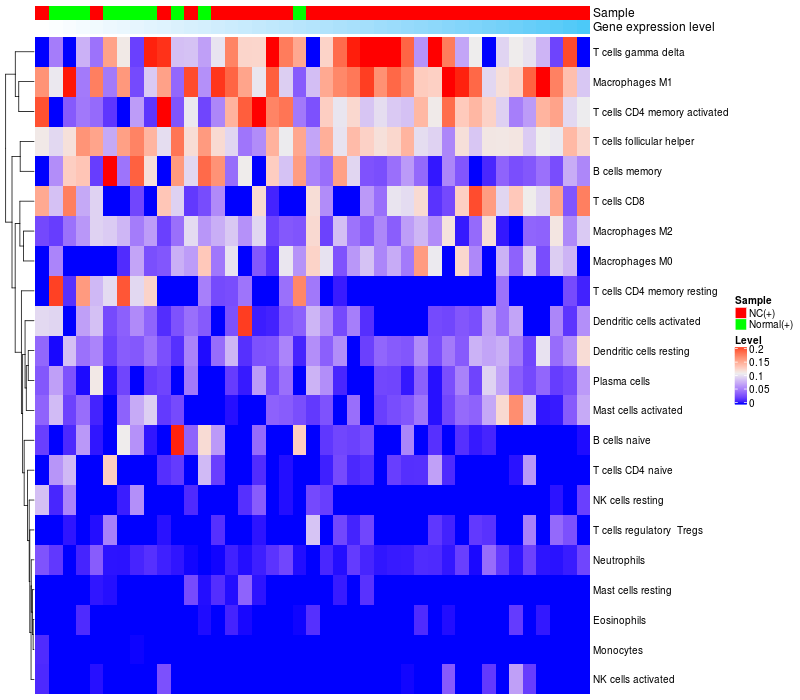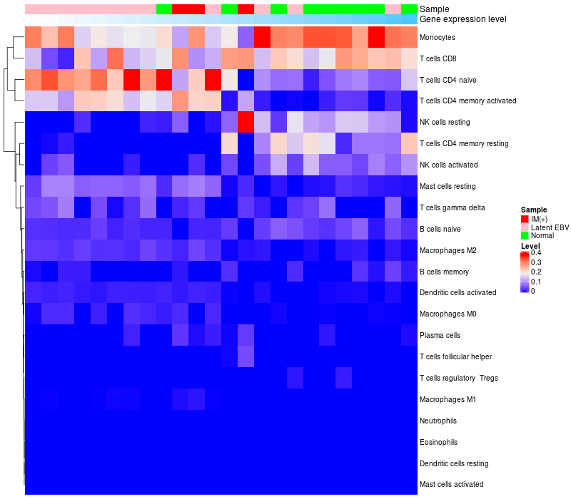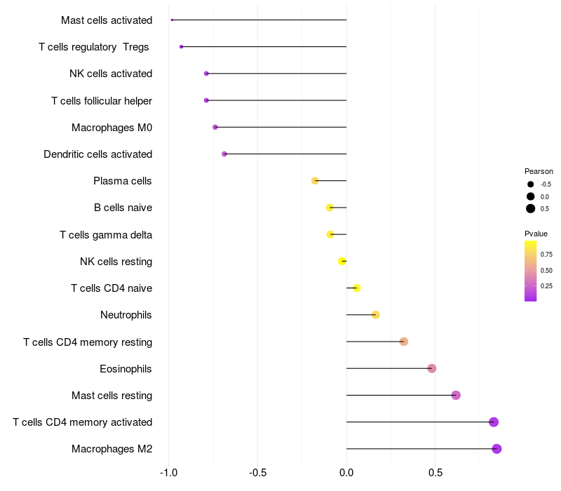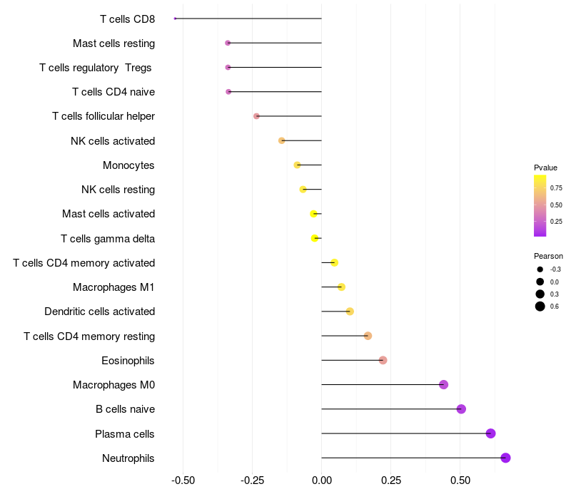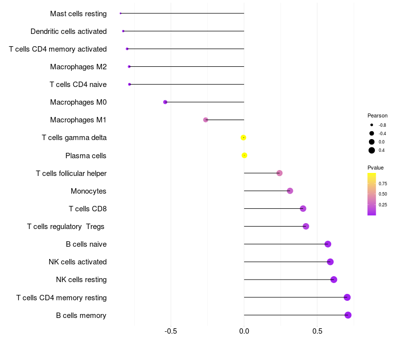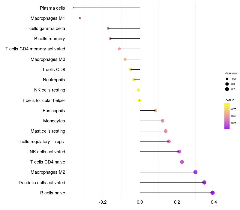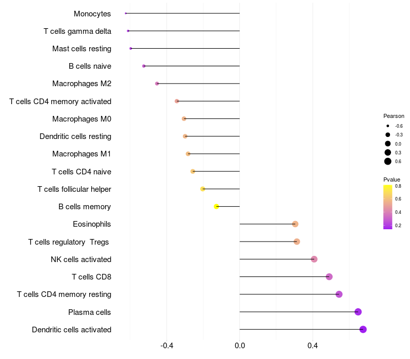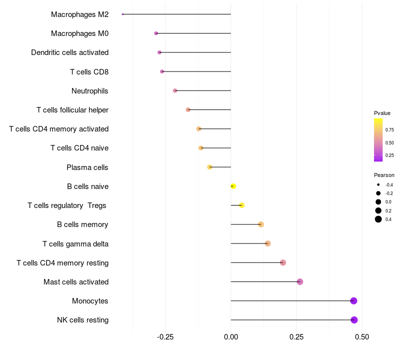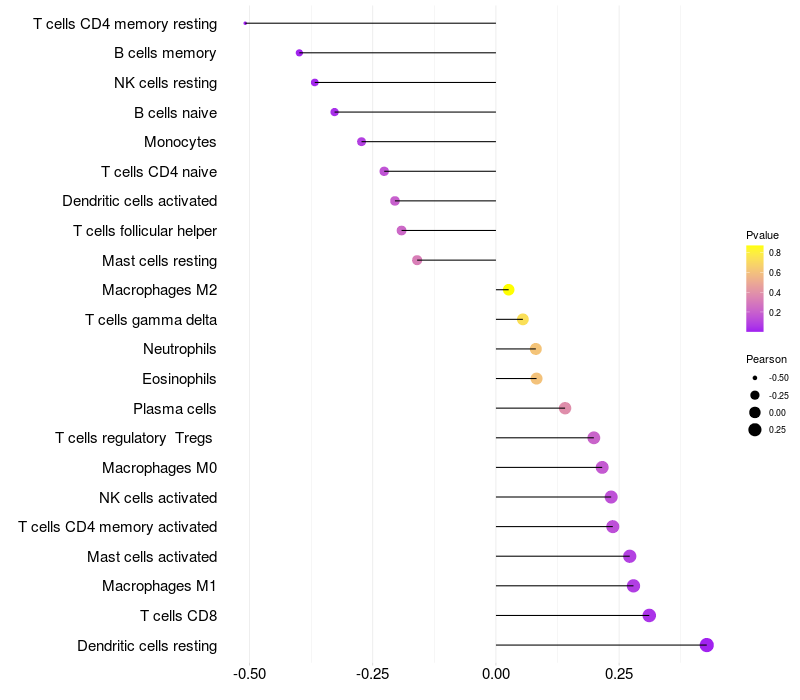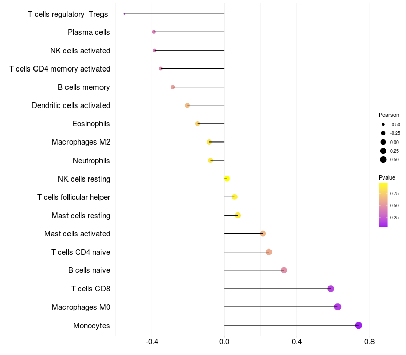 Lollipop of FSCN1 expression and immune infiltrating cell level correlation result in EBV+ samples