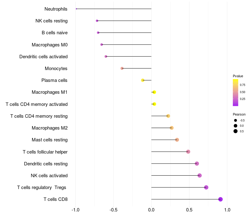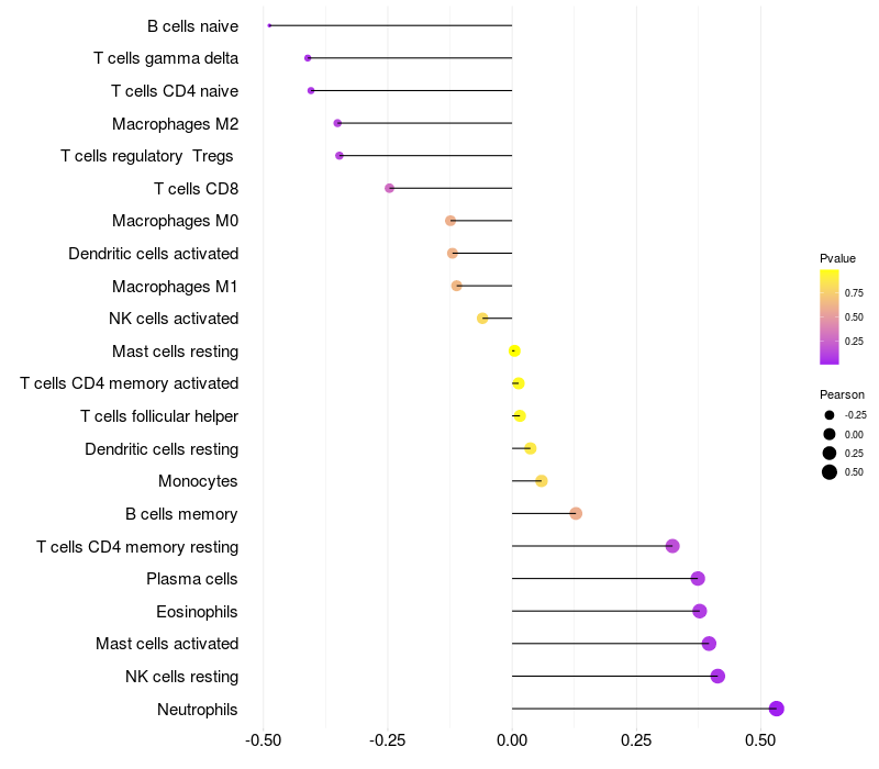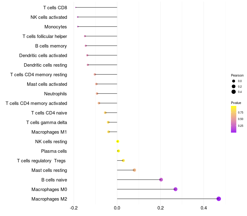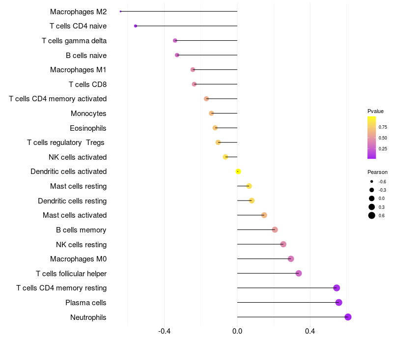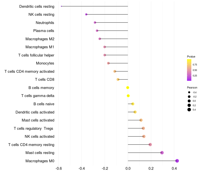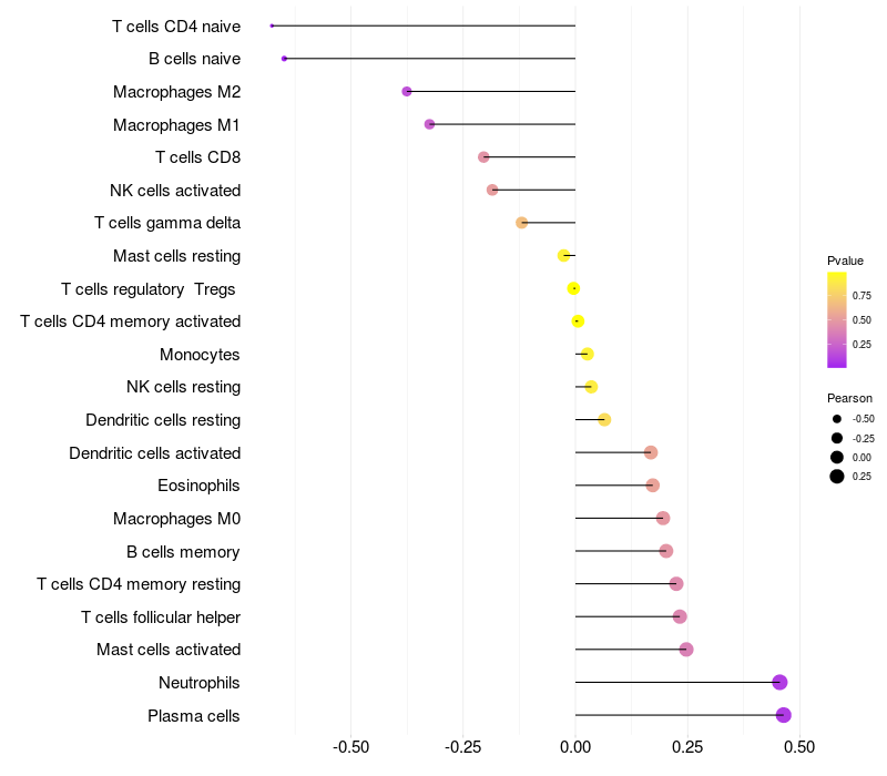 Lollipop of FSD2 expression and immune infiltrating cell level correlation result in HPV+ samples