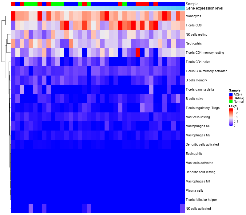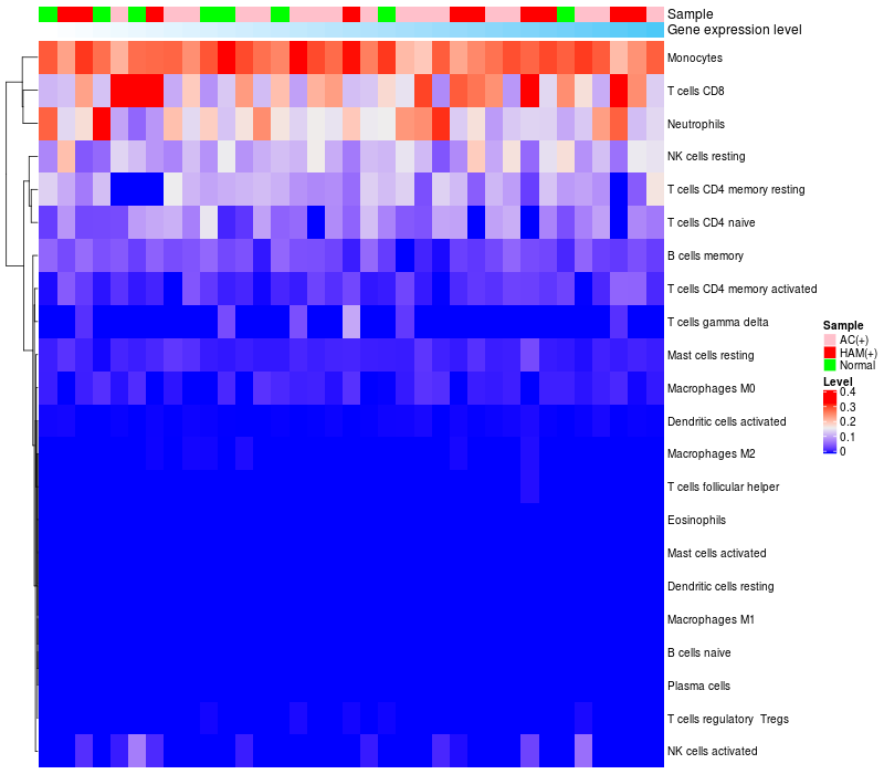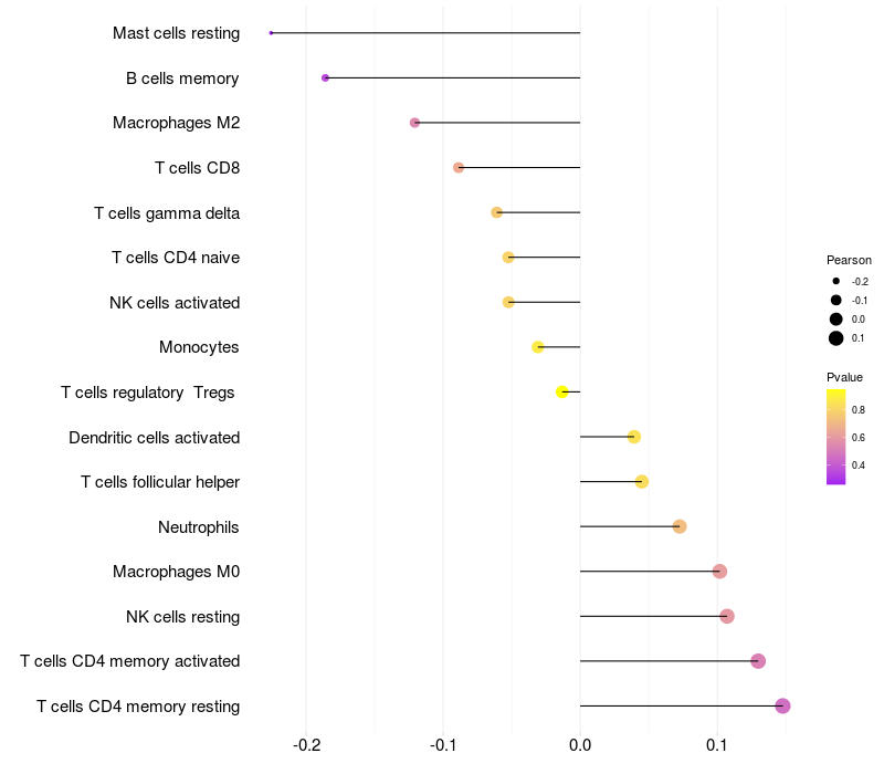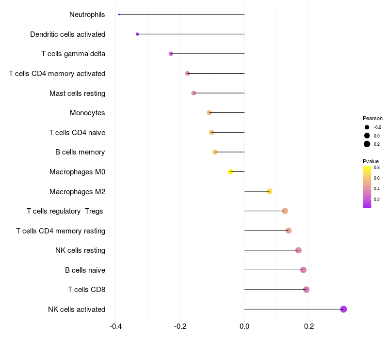 Relationship between gene expression and immune infiltrating cell level