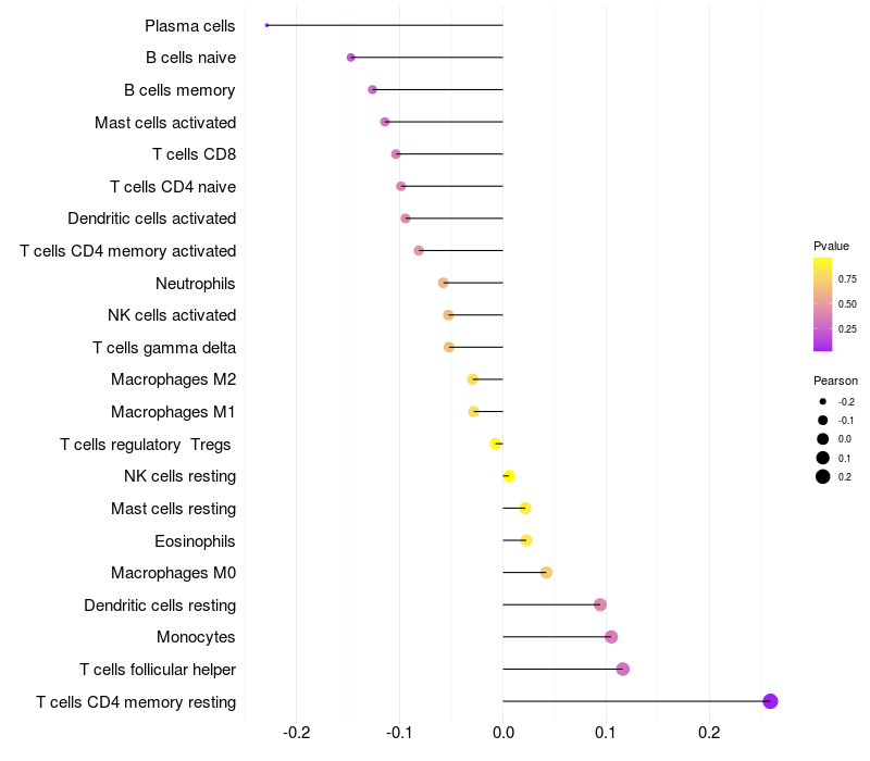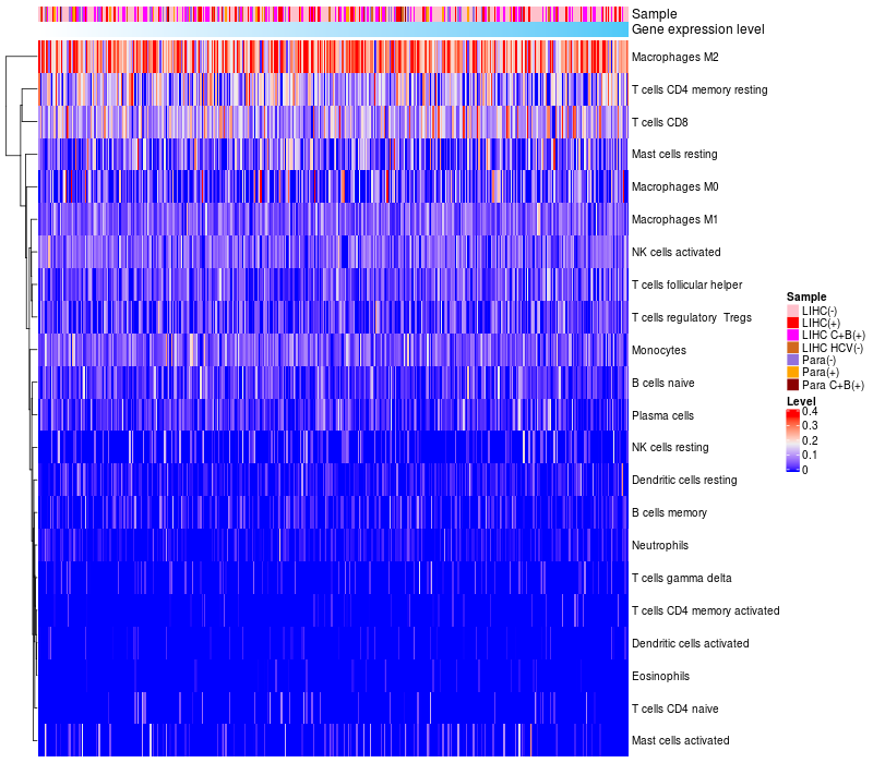 Relationship between gene expression and immune infiltrating cell level