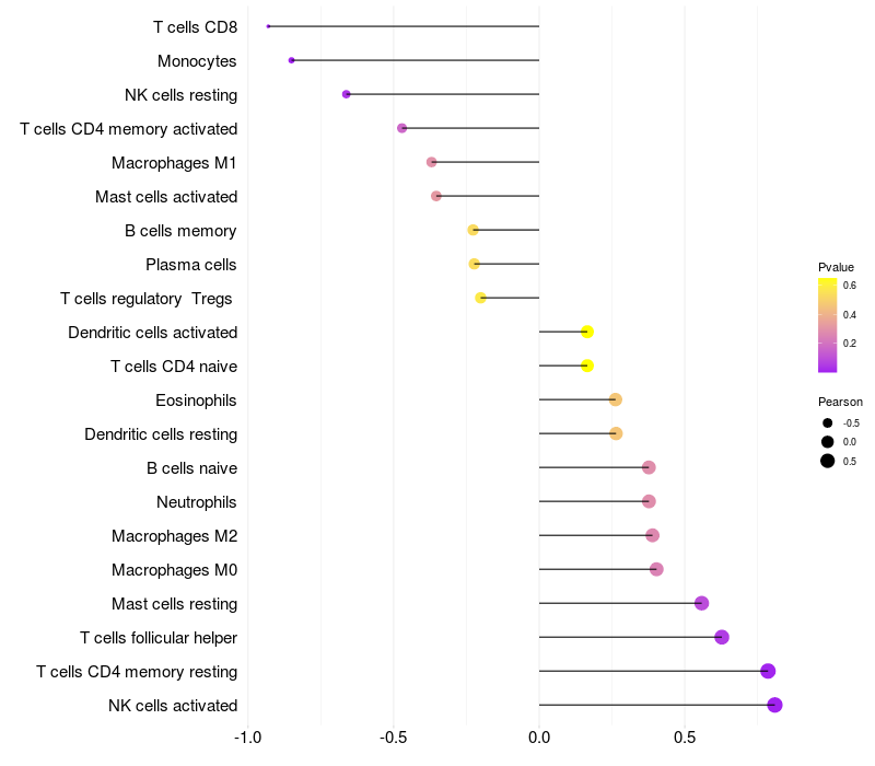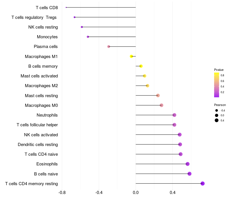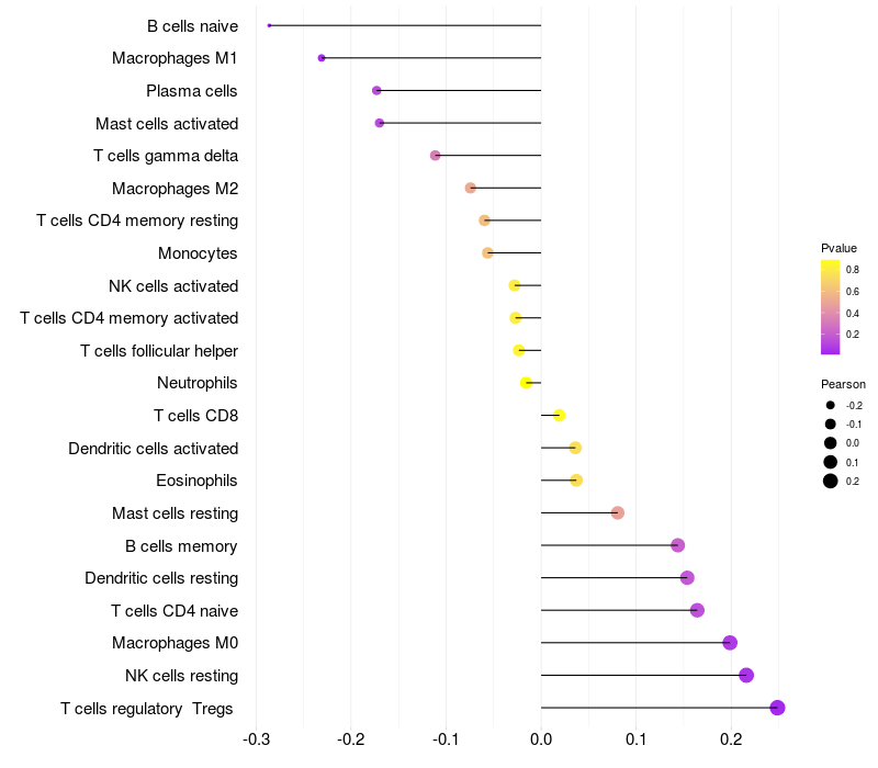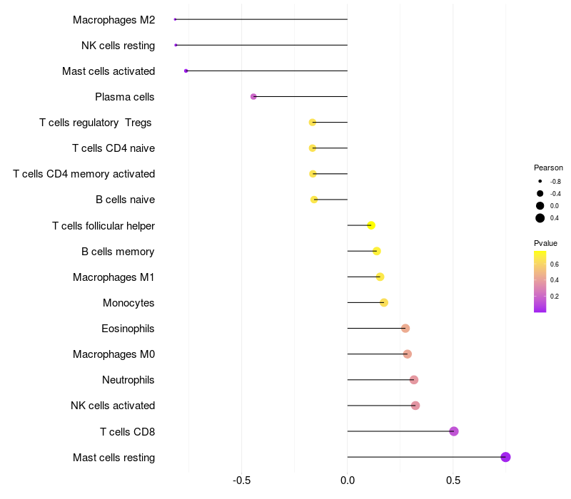 Lollipop of FTSJ3 expression and immune infiltrating cell level correlation result in HBV+ Chronic HBV (CHB) infection samples