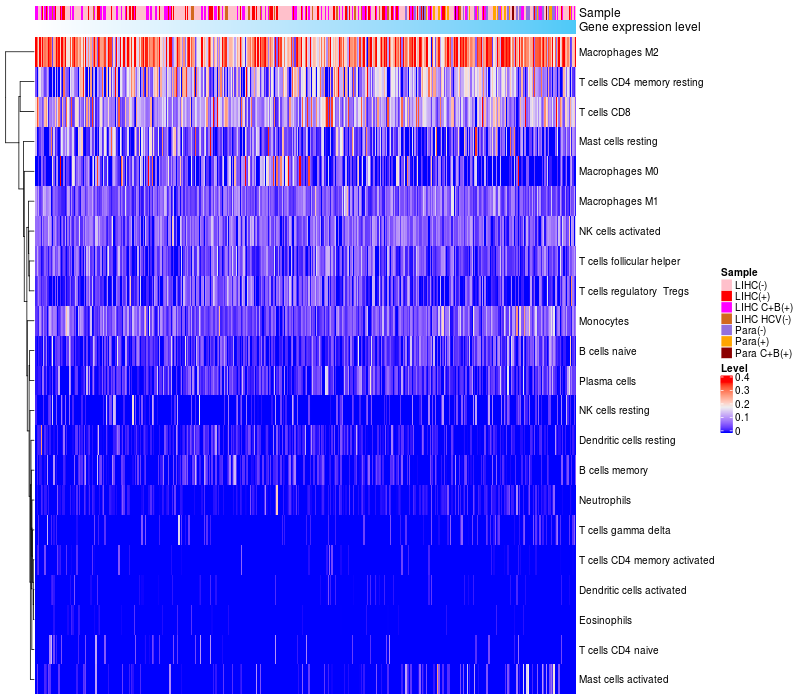 Liver hepatocellular carcinoma HCV (HBV+)(86), Liver hepatocellular carcinoma HCV (HBV-)(19), Liver hepatocellular carcinoma (HBV+)(209), Liver hepatocellular carcinoma (HBV+)(60), Paracancerous HCV (HBV+)(4), Paracancerous (HBV-)(28), Paracancerous (HBV+)(18) |