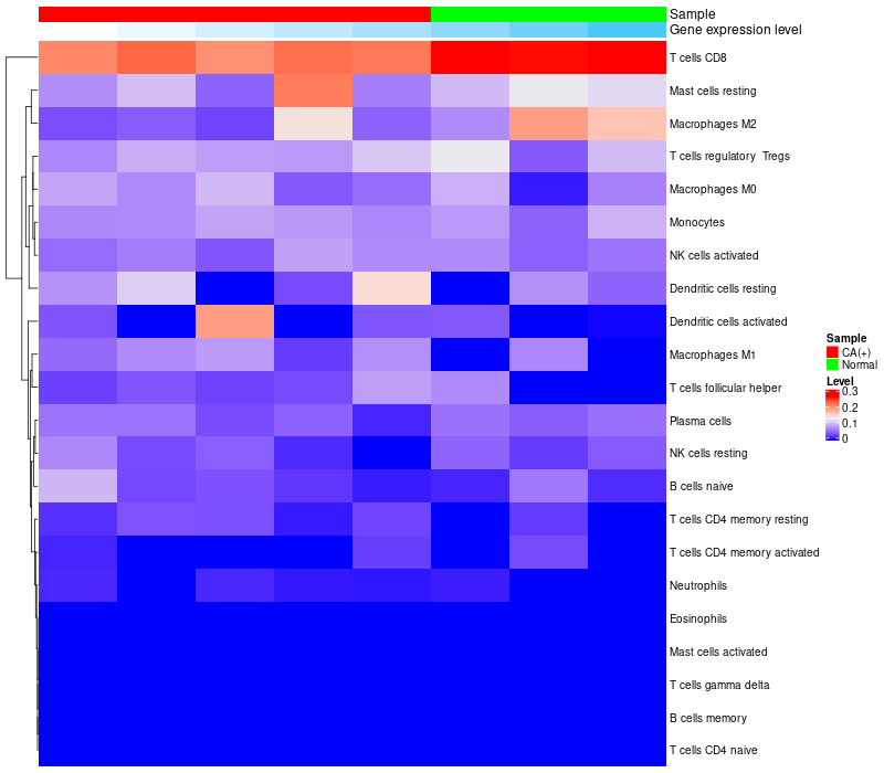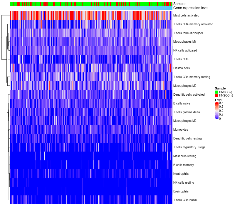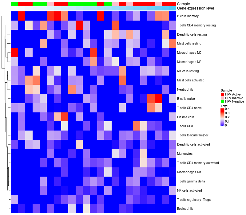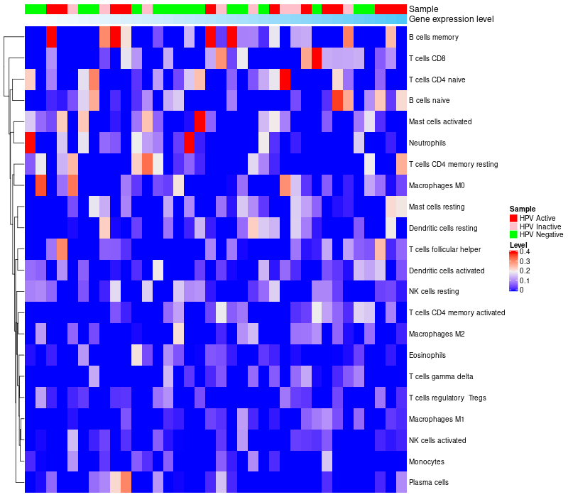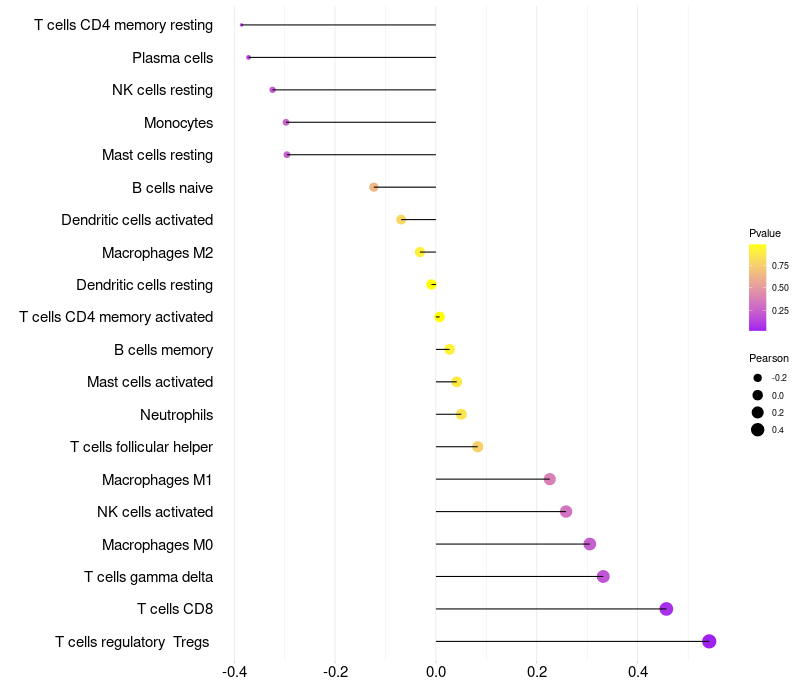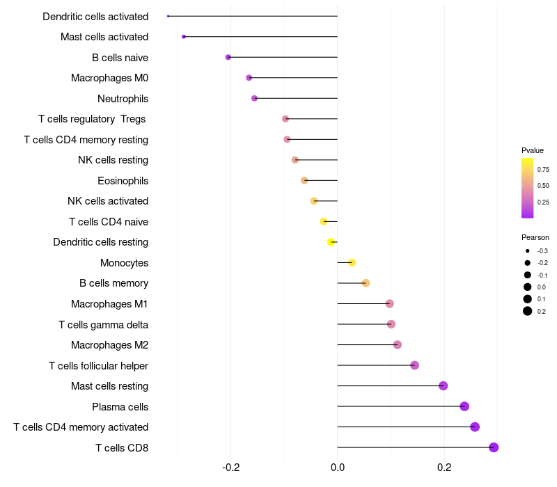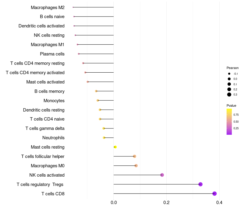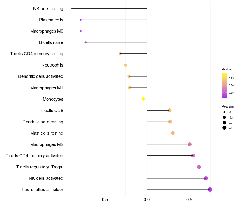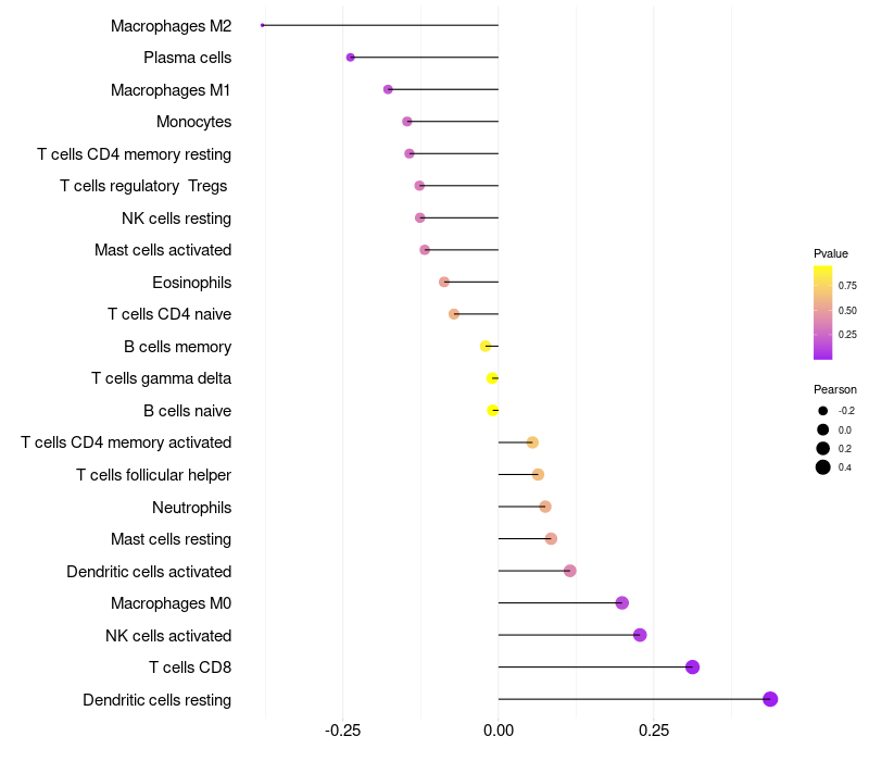 Lollipop of FXYD2 expression and immune infiltrating cell level correlation result in HPV+ samples