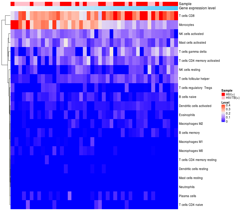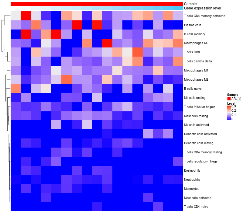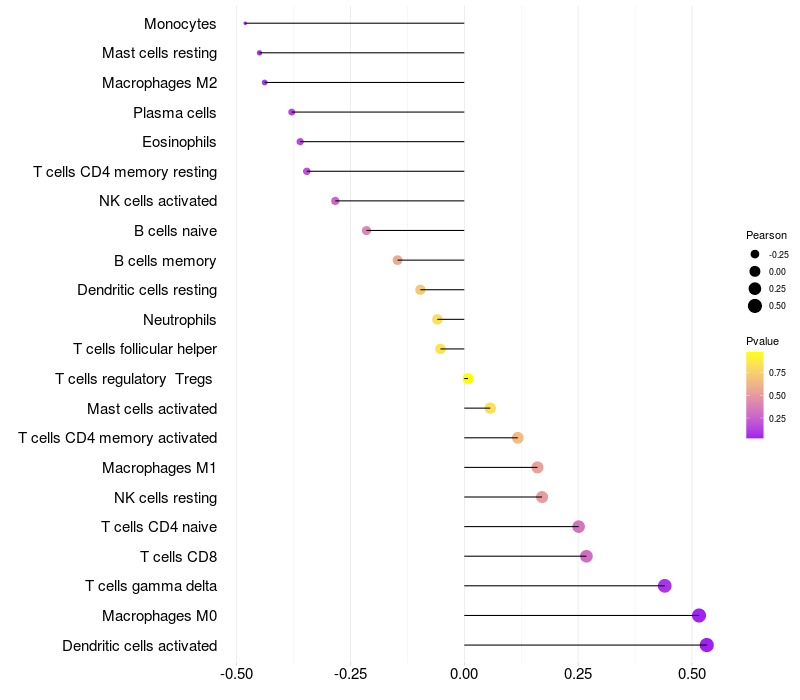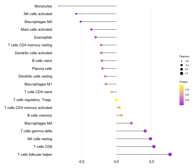Relationship between gene expression and immune infiltrating cell level