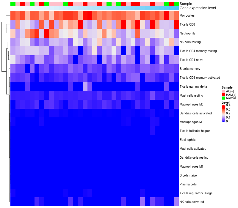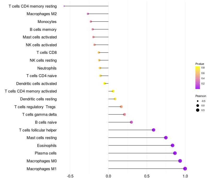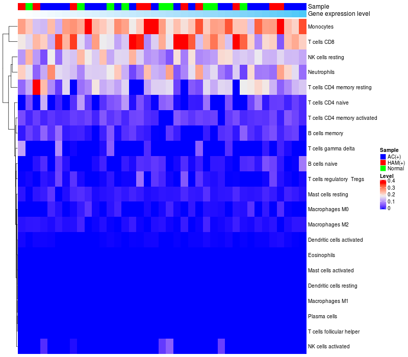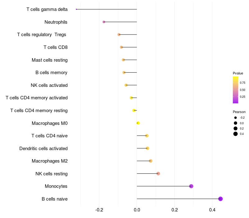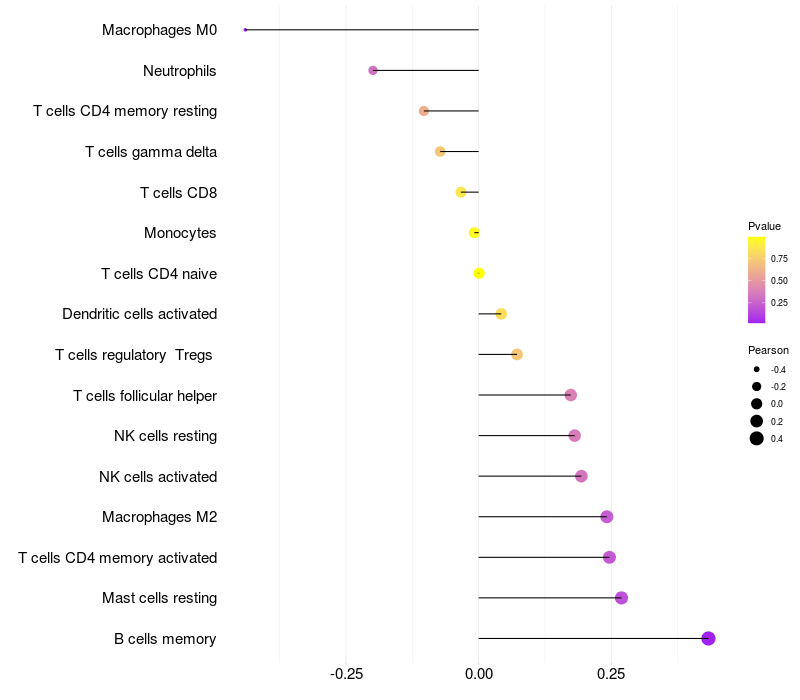 Relationship between gene expression and immune infiltrating cell level