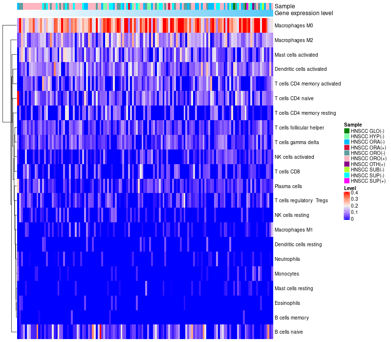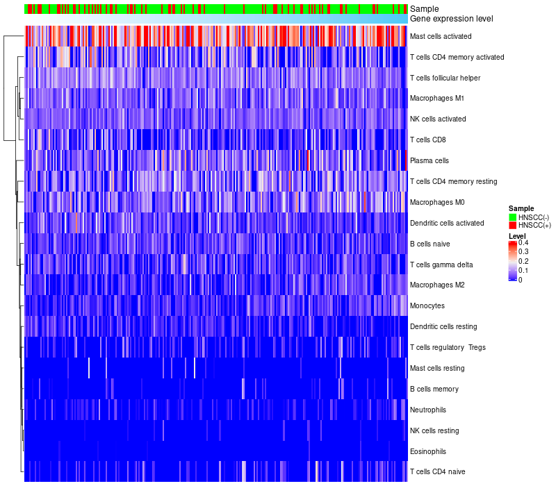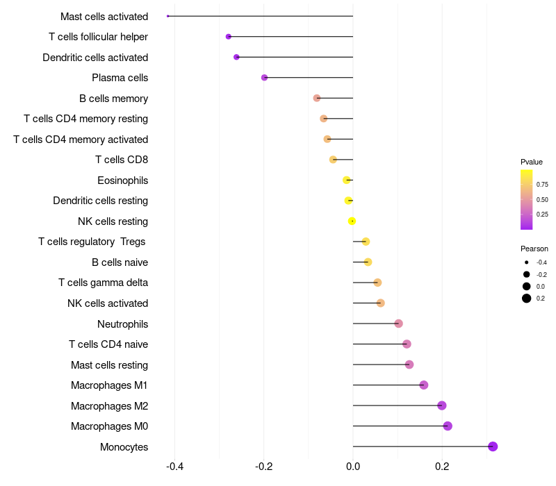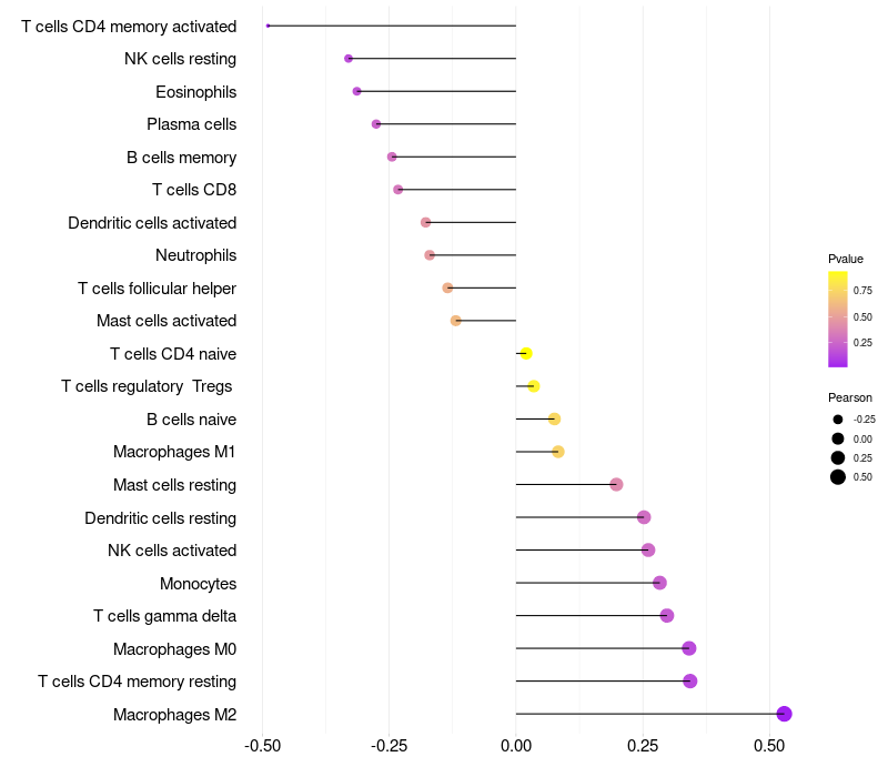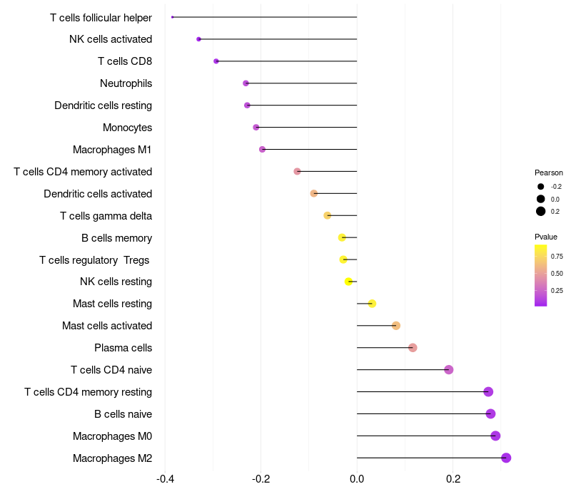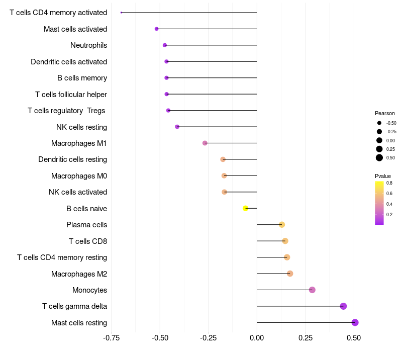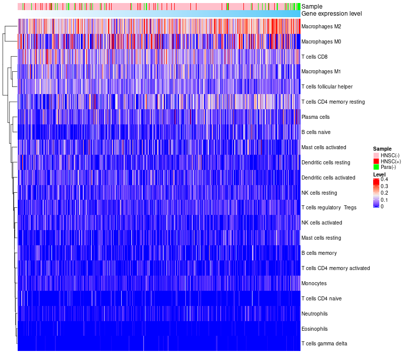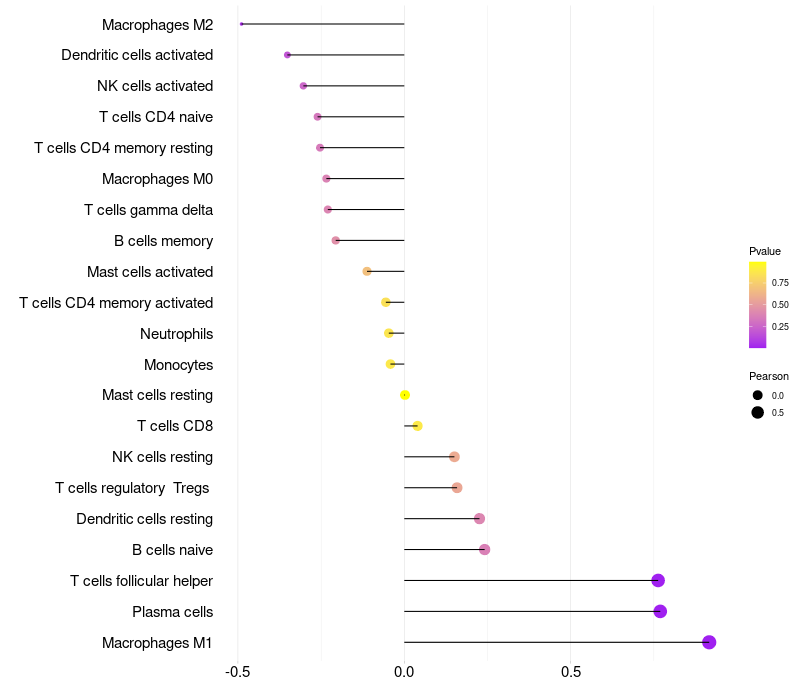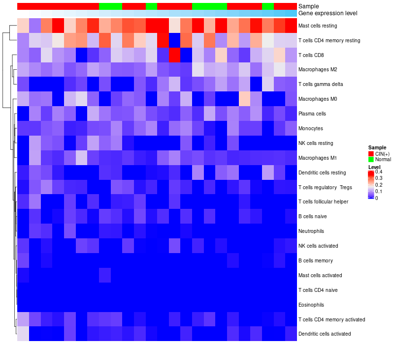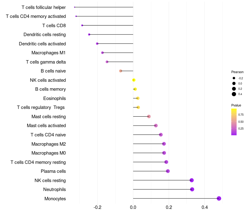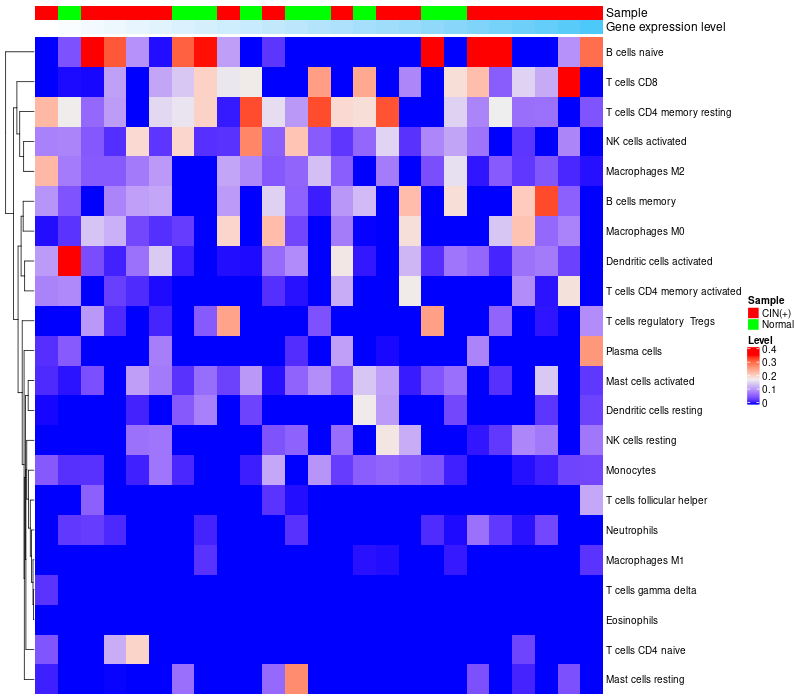 Relationship between gene expression and immune infiltrating cell level
